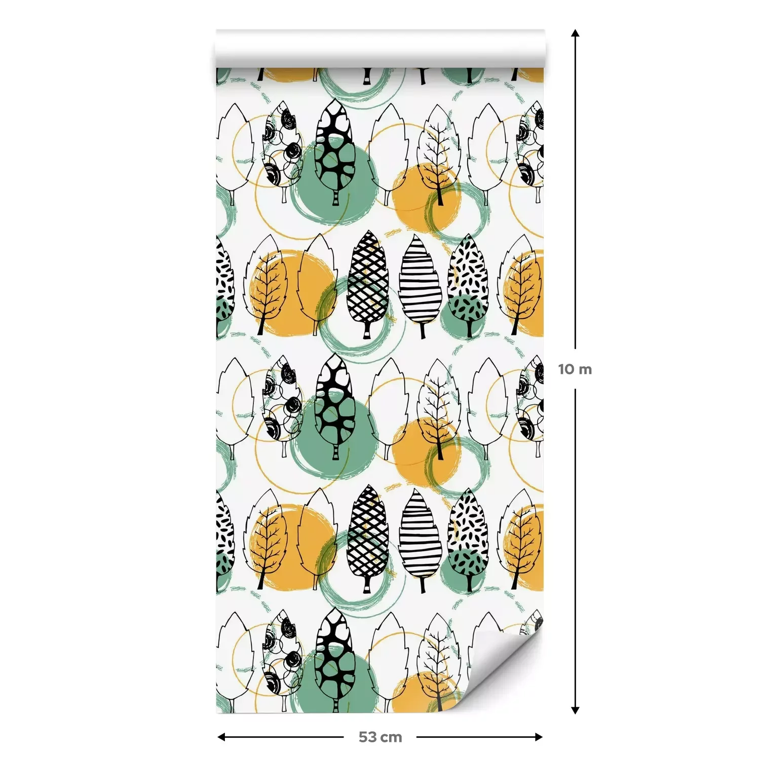 Eine Standard-Tapetenrolle hat die Maße 0,53 m x 10 m und deckt eine Wandfläche von etwa 5 m² ab.
