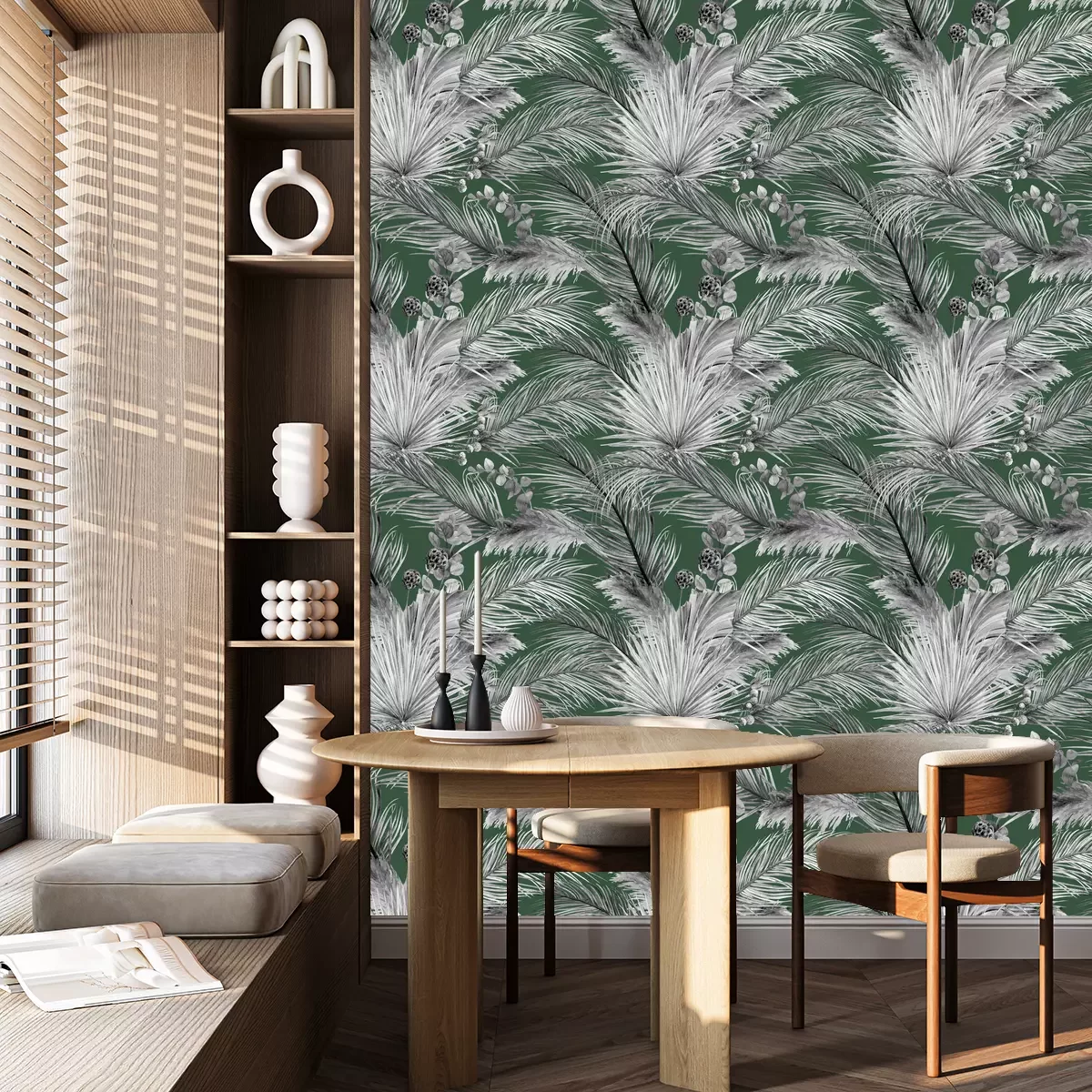 Grünliche exotische BlätterTapete