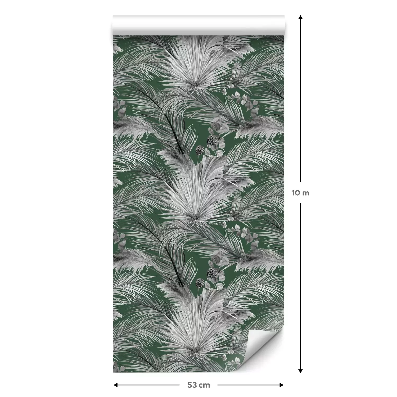 Eine Standard-Tapetenrolle hat die Maße 0,53 m x 10 m und deckt eine Wandfläche von etwa 5 m² ab.