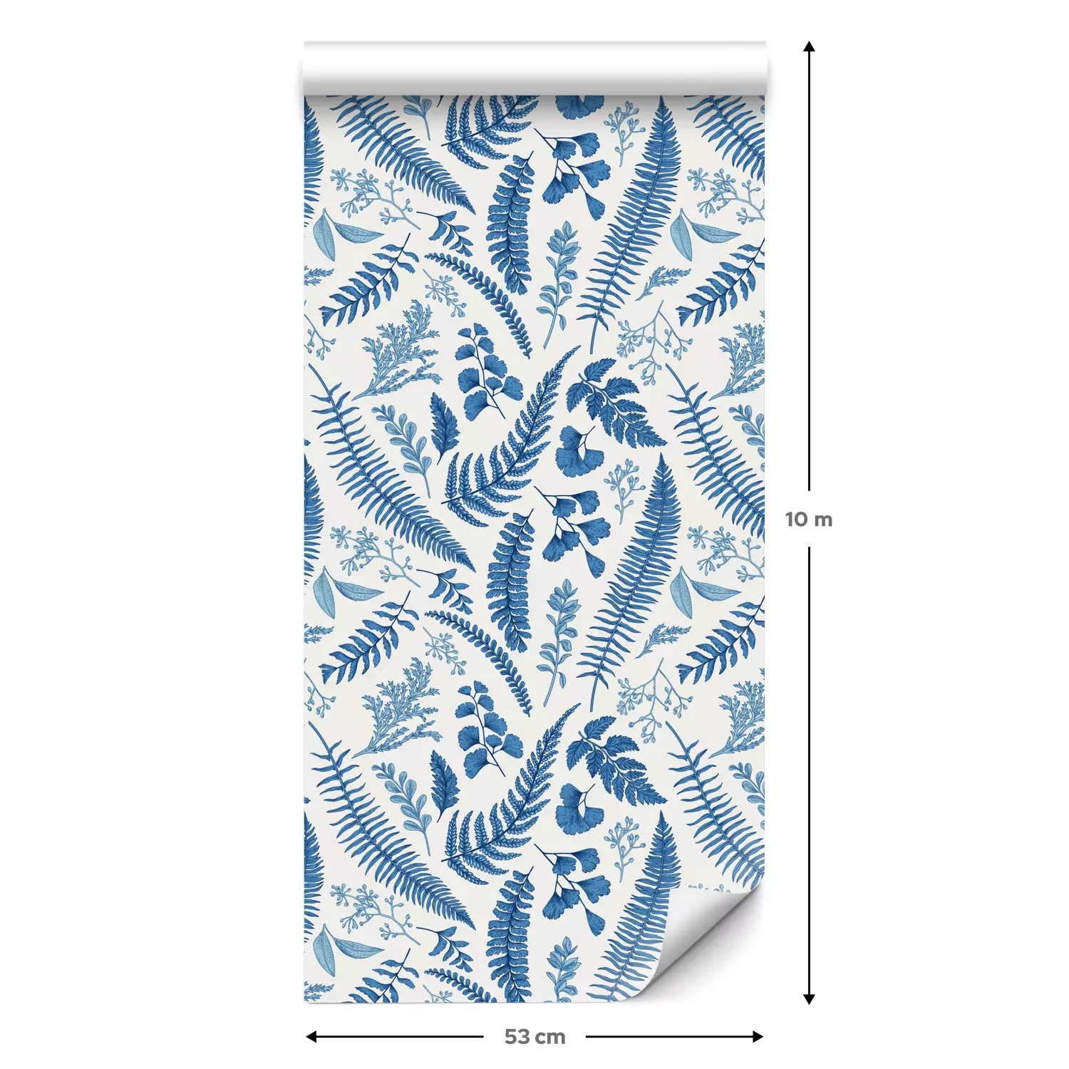 Eine Standard-Tapetenrolle hat die Maße 0,53 m x 10 m und deckt eine Wandfläche von etwa 5 m² ab.