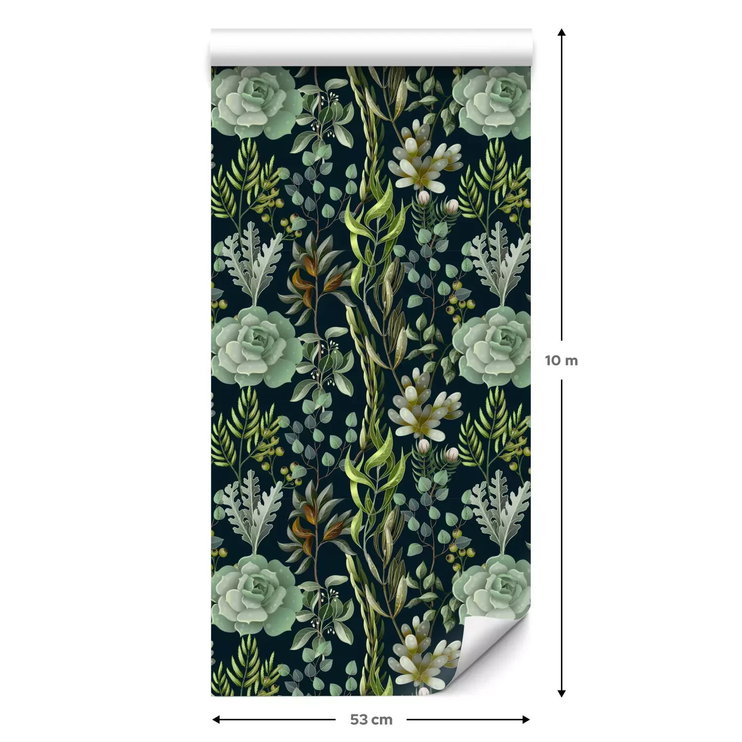 Eine Standard-Tapetenrolle hat die Maße 0,53 m x 10 m und deckt eine Wandfläche von etwa 5 m² ab.