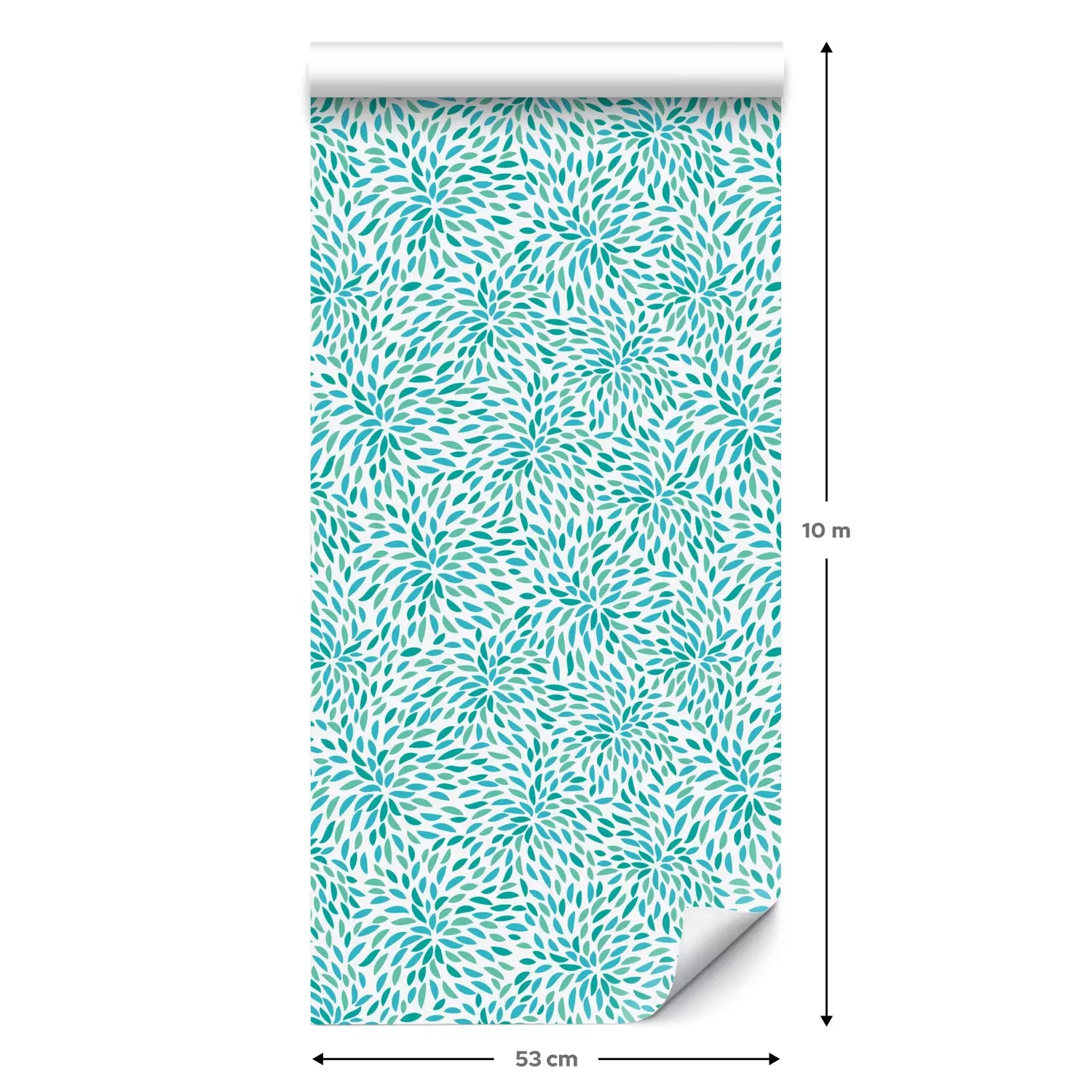 Eine Standard-Tapetenrolle hat die Maße 0,53 m x 10 m und deckt eine Wandfläche von etwa 5 m² ab.