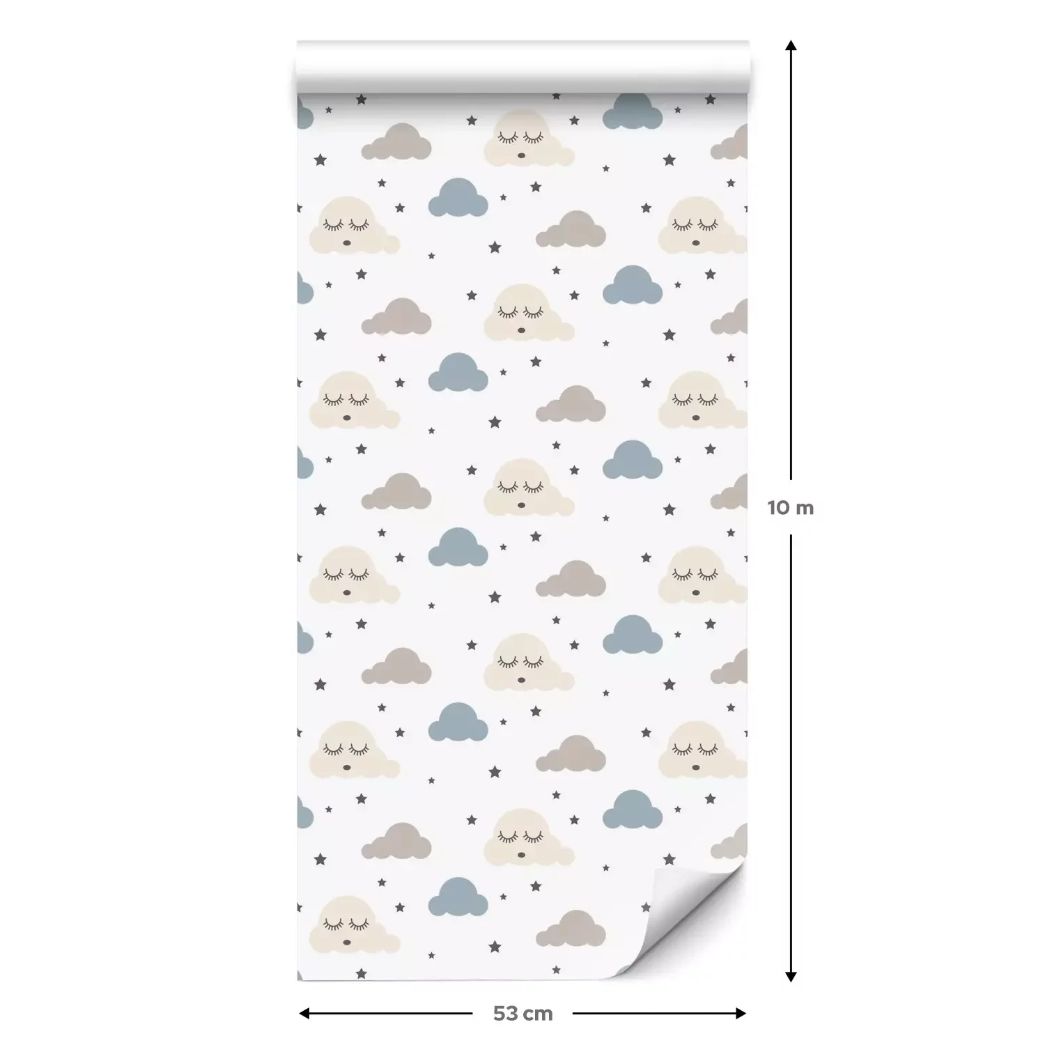 Eine Standard-Tapetenrolle hat die Maße 0,53 m x 10 m und deckt eine Wandfläche von etwa 5 m² ab.