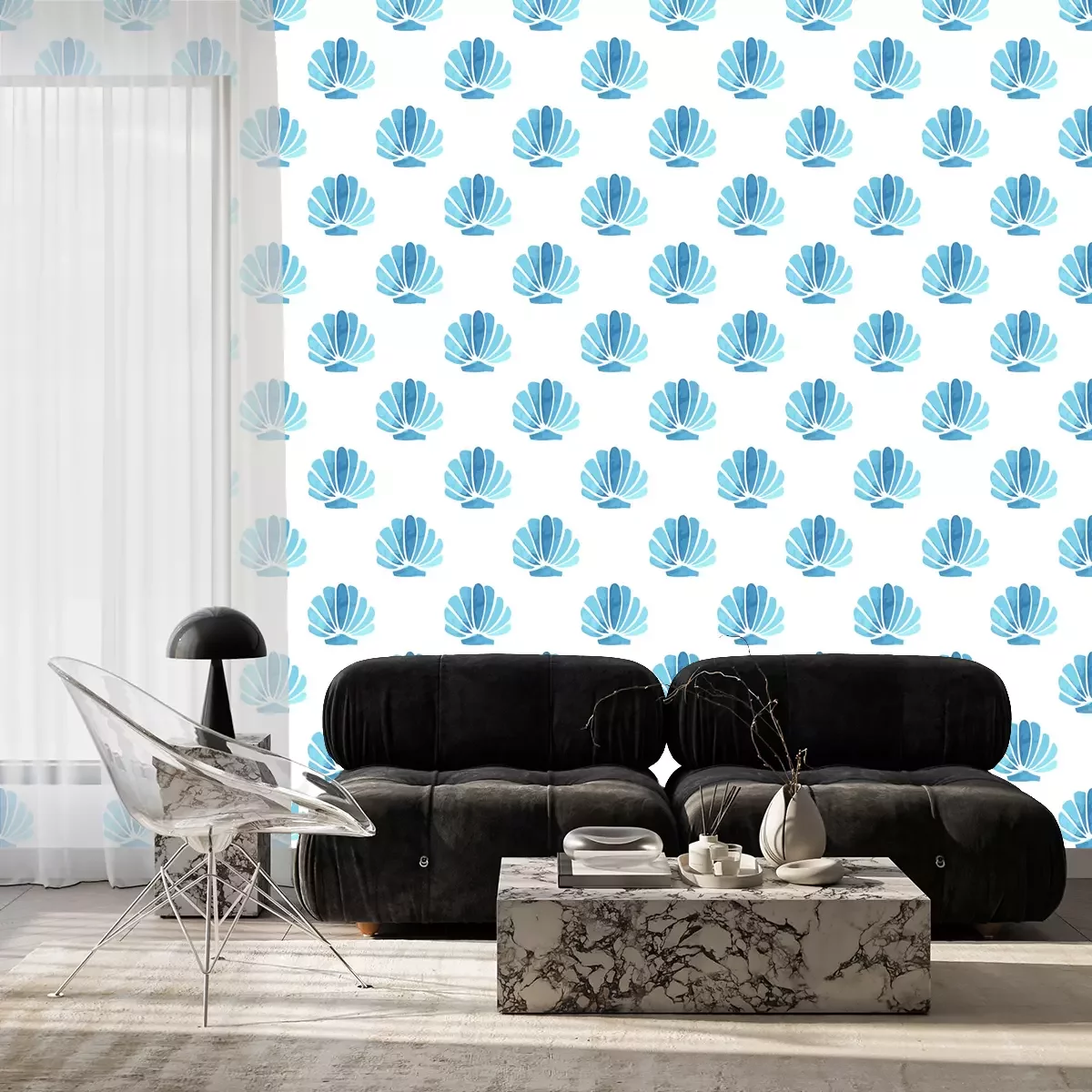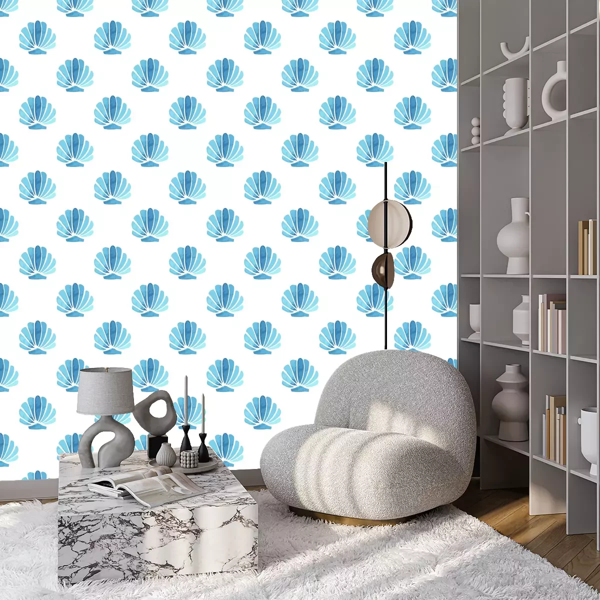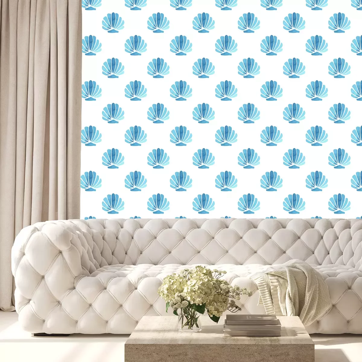 Tapete Blaue Aquarellmuscheln
