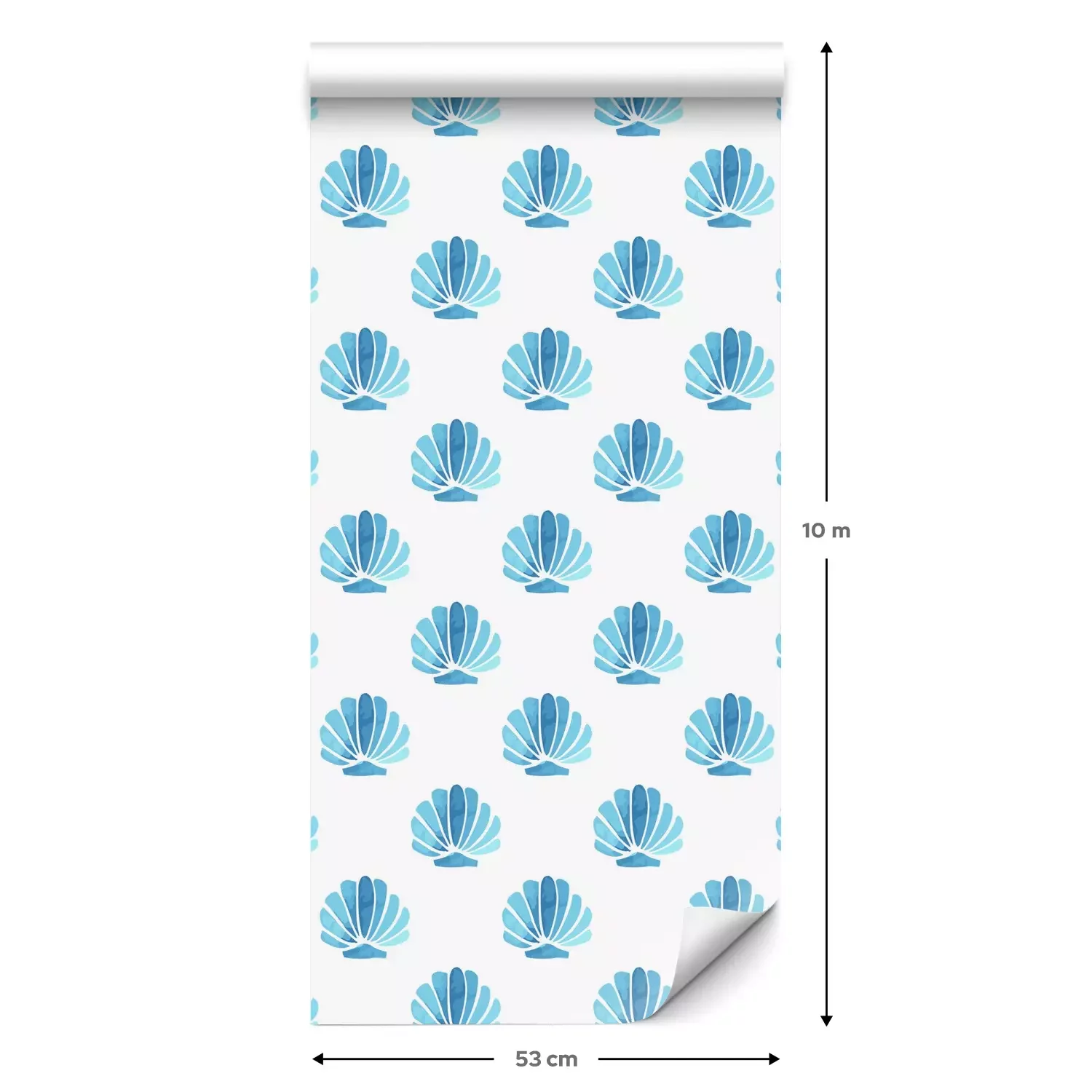 Eine Standard-Tapetenrolle hat die Maße 0,53 m x 10 m und deckt eine Wandfläche von etwa 5 m² ab.