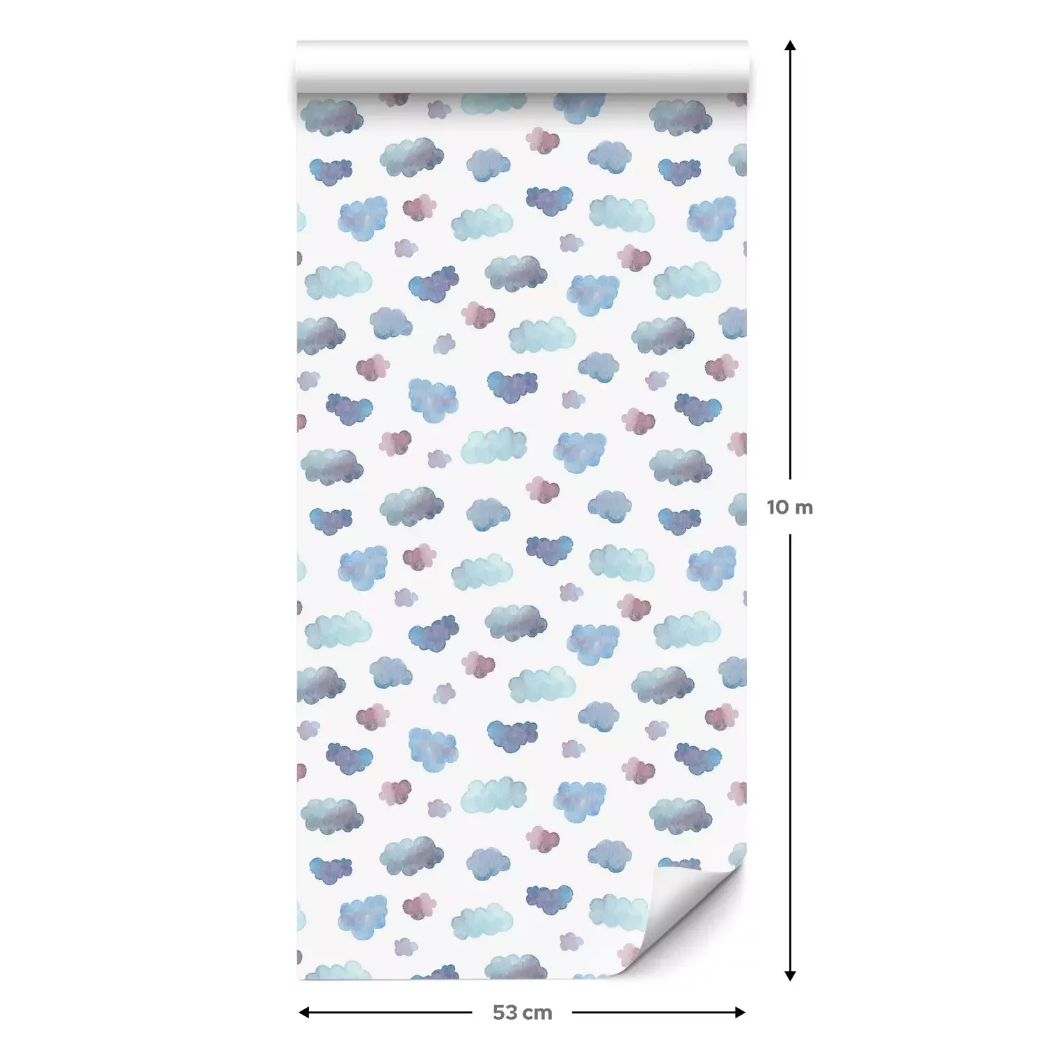 Eine Standard-Tapetenrolle hat die Maße 0,53 m x 10 m und deckt eine Wandfläche von etwa 5 m² ab.