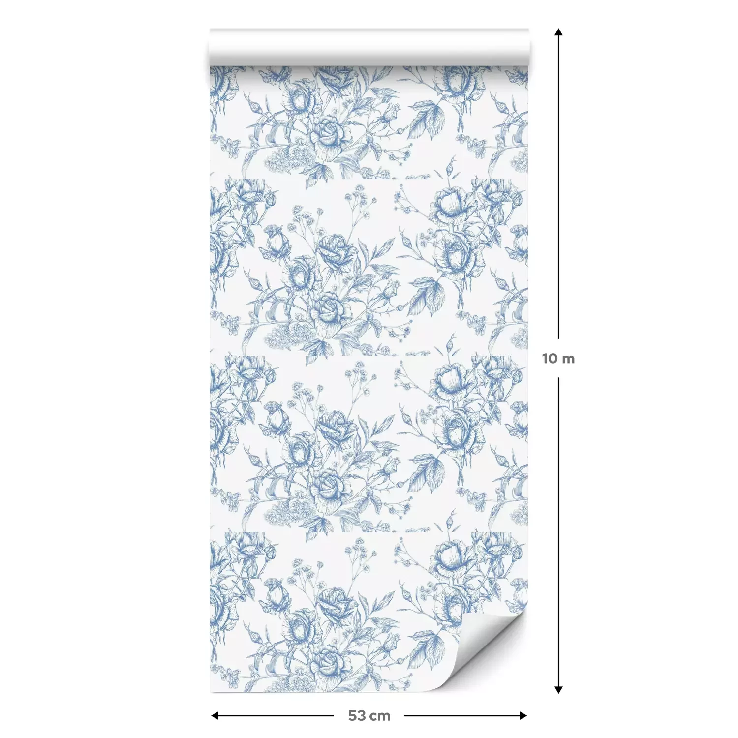 Eine Standard-Tapetenrolle hat die Maße 0,53 m x 10 m und deckt eine Wandfläche von etwa 5 m² ab.