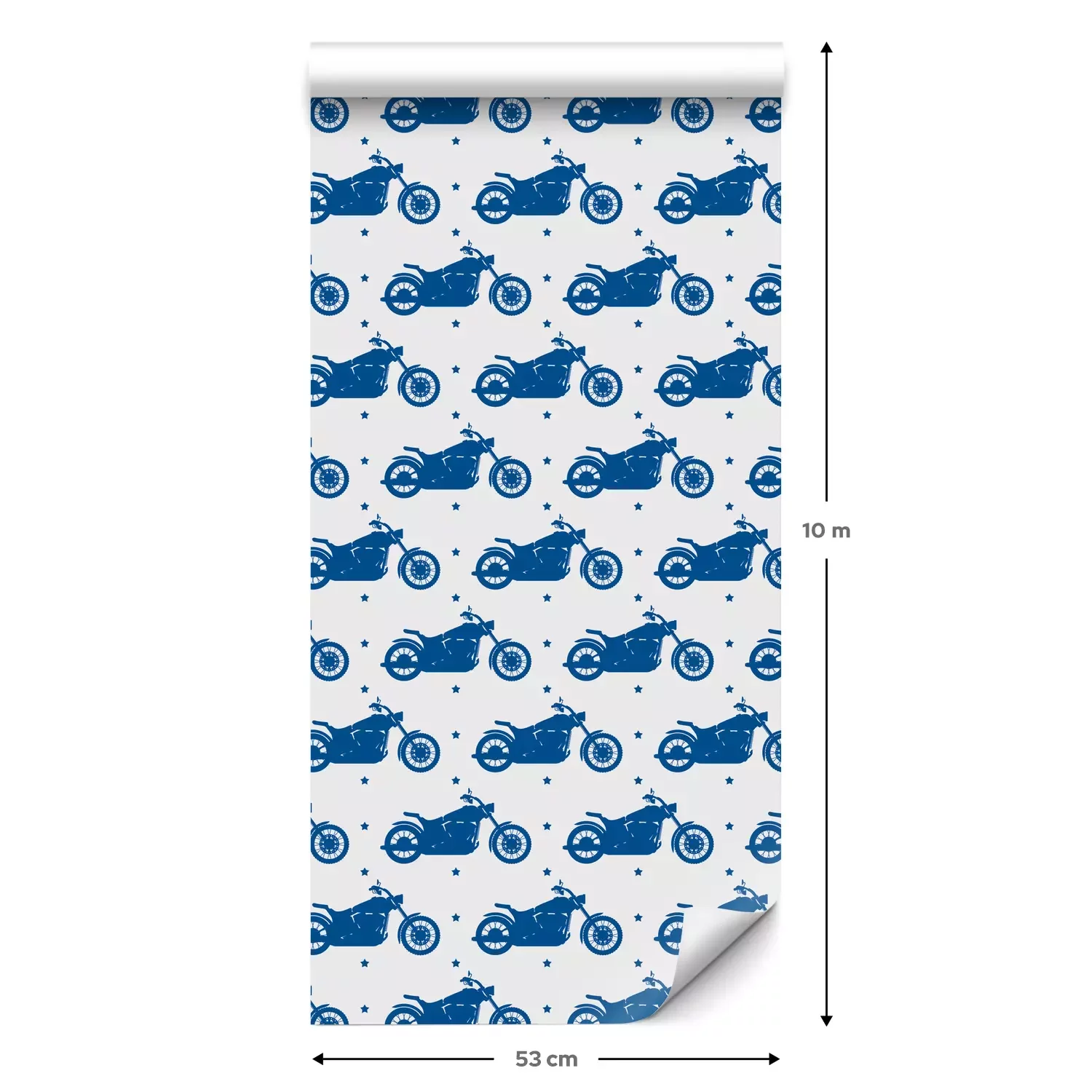 Eine Standard-Tapetenrolle hat die Maße 0,53 m x 10 m und deckt eine Wandfläche von etwa 5 m² ab.