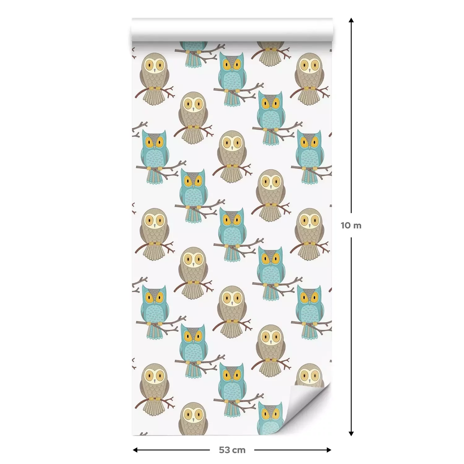 Eine Standard-Tapetenrolle hat die Maße 0,53 m x 10 m und deckt eine Wandfläche von etwa 5 m² ab.