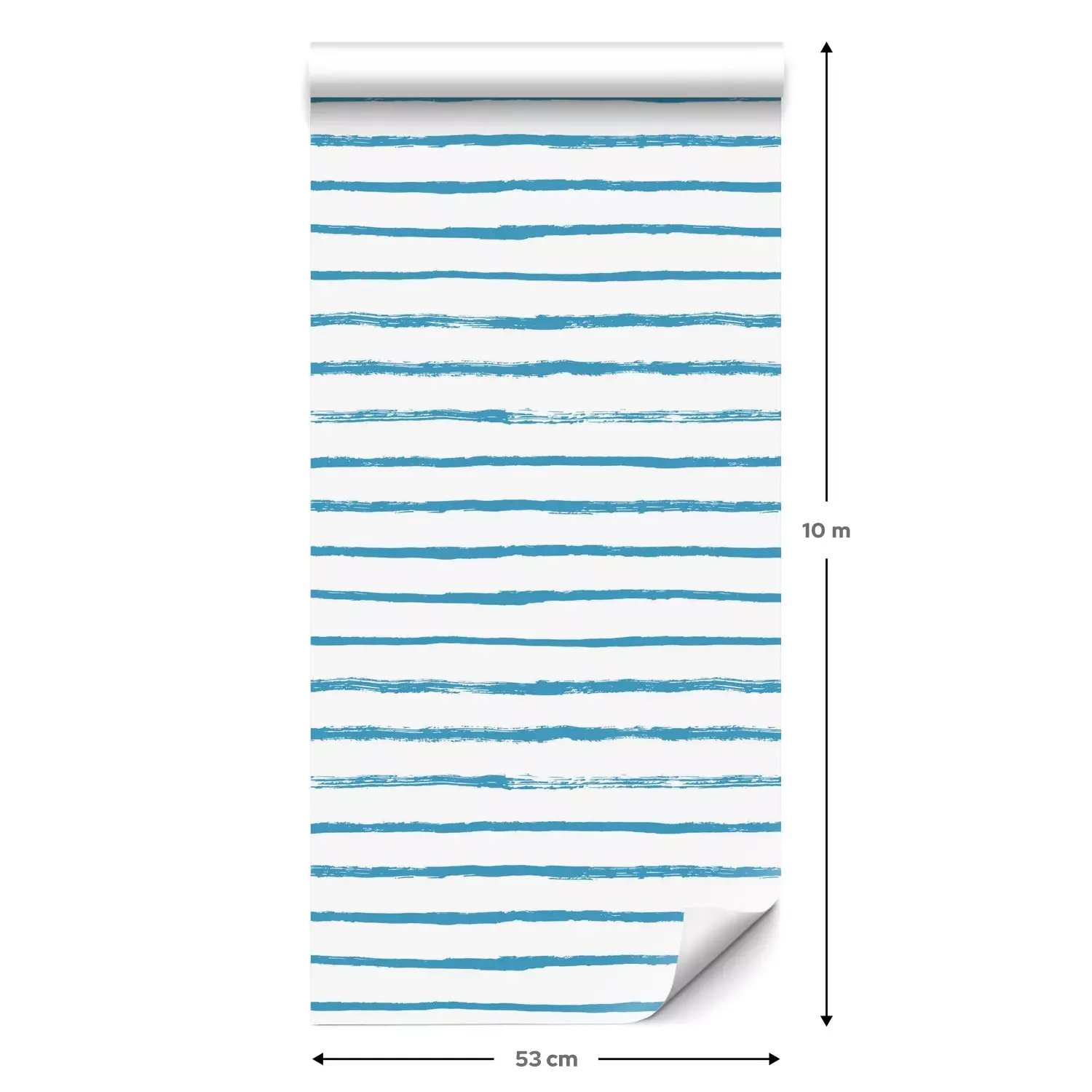 Eine Standard-Tapetenrolle hat die Maße 0,53 m x 10 m und deckt eine Wandfläche von etwa 5 m² ab.