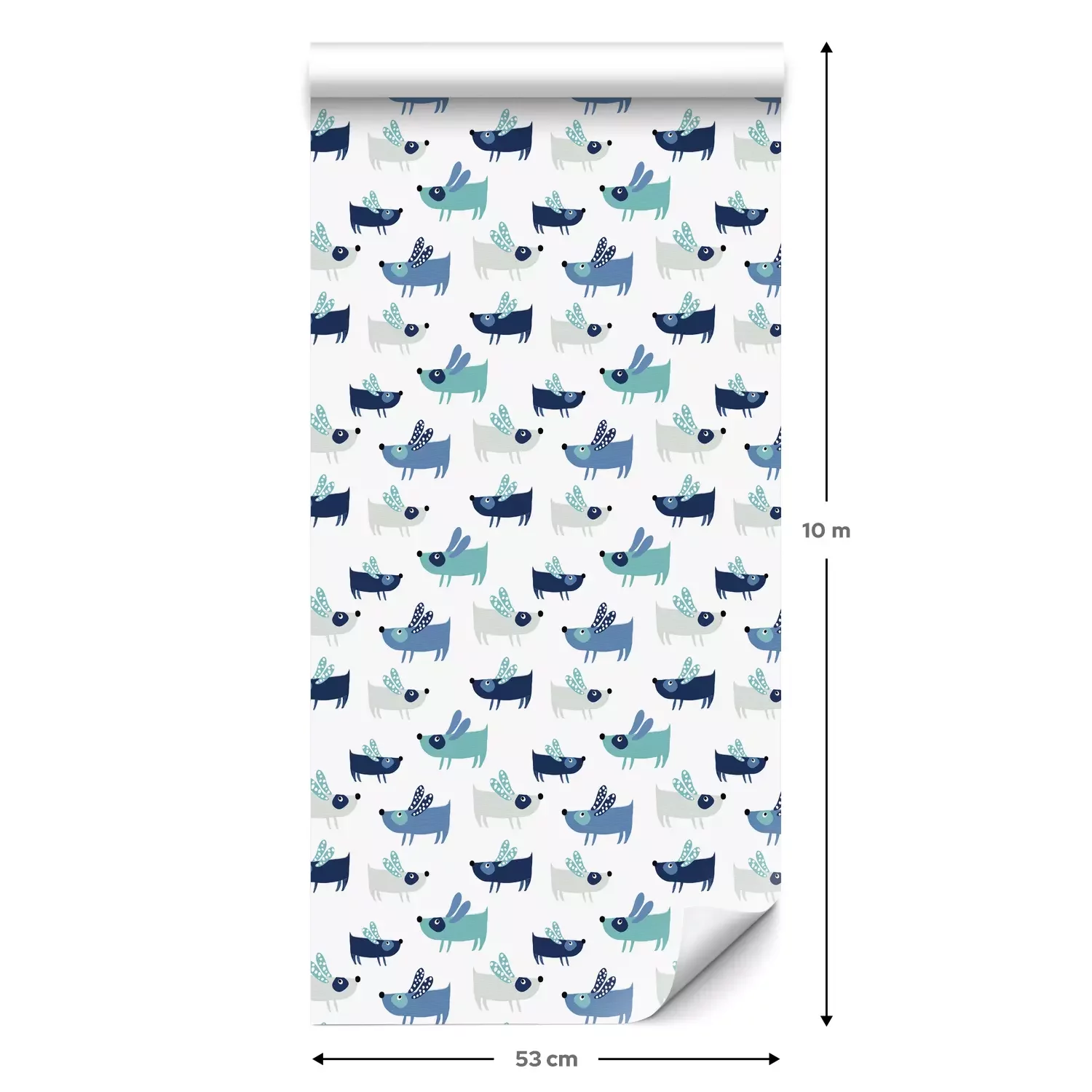 Eine Standard-Tapetenrolle hat die Maße 0,53 m x 10 m und deckt eine Wandfläche von etwa 5 m² ab.