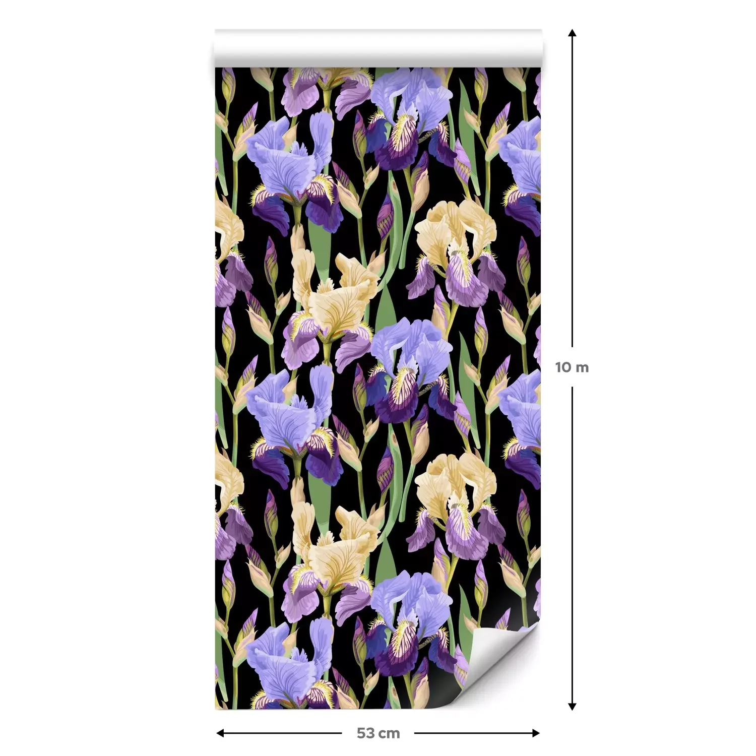 Eine Standard-Tapetenrolle hat die Maße 0,53 m x 10 m und deckt eine Wandfläche von etwa 5 m² ab.