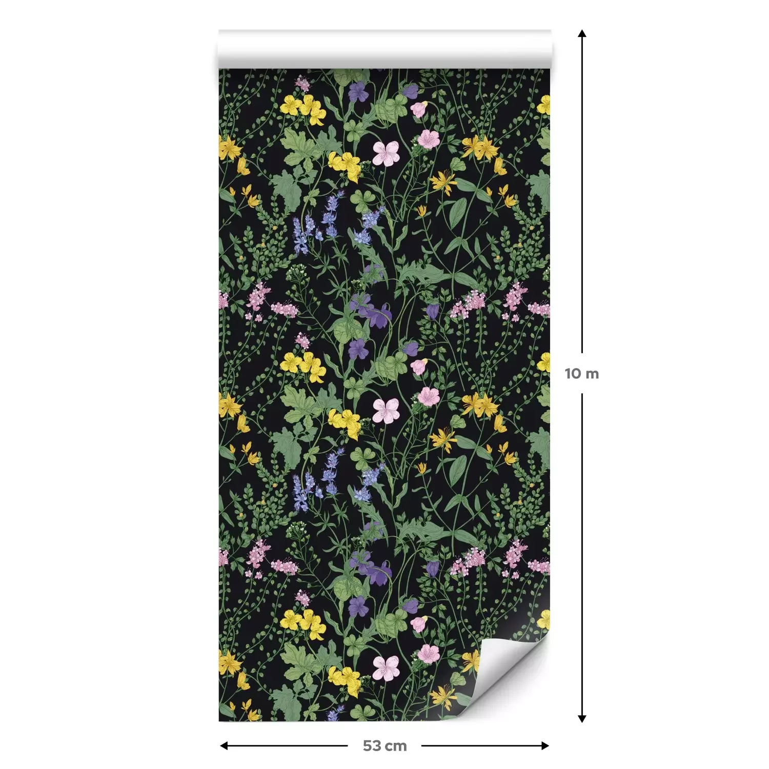 Eine Standard-Tapetenrolle hat die Maße 0,53 m x 10 m und deckt eine Wandfläche von etwa 5 m² ab.