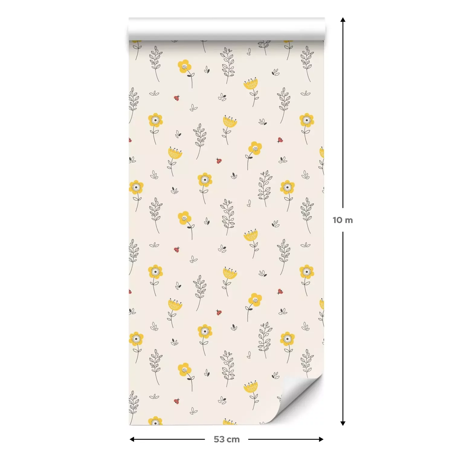 Eine Standard-Tapetenrolle hat die Maße 0,53 m x 10 m und deckt eine Wandfläche von etwa 5 m² ab.