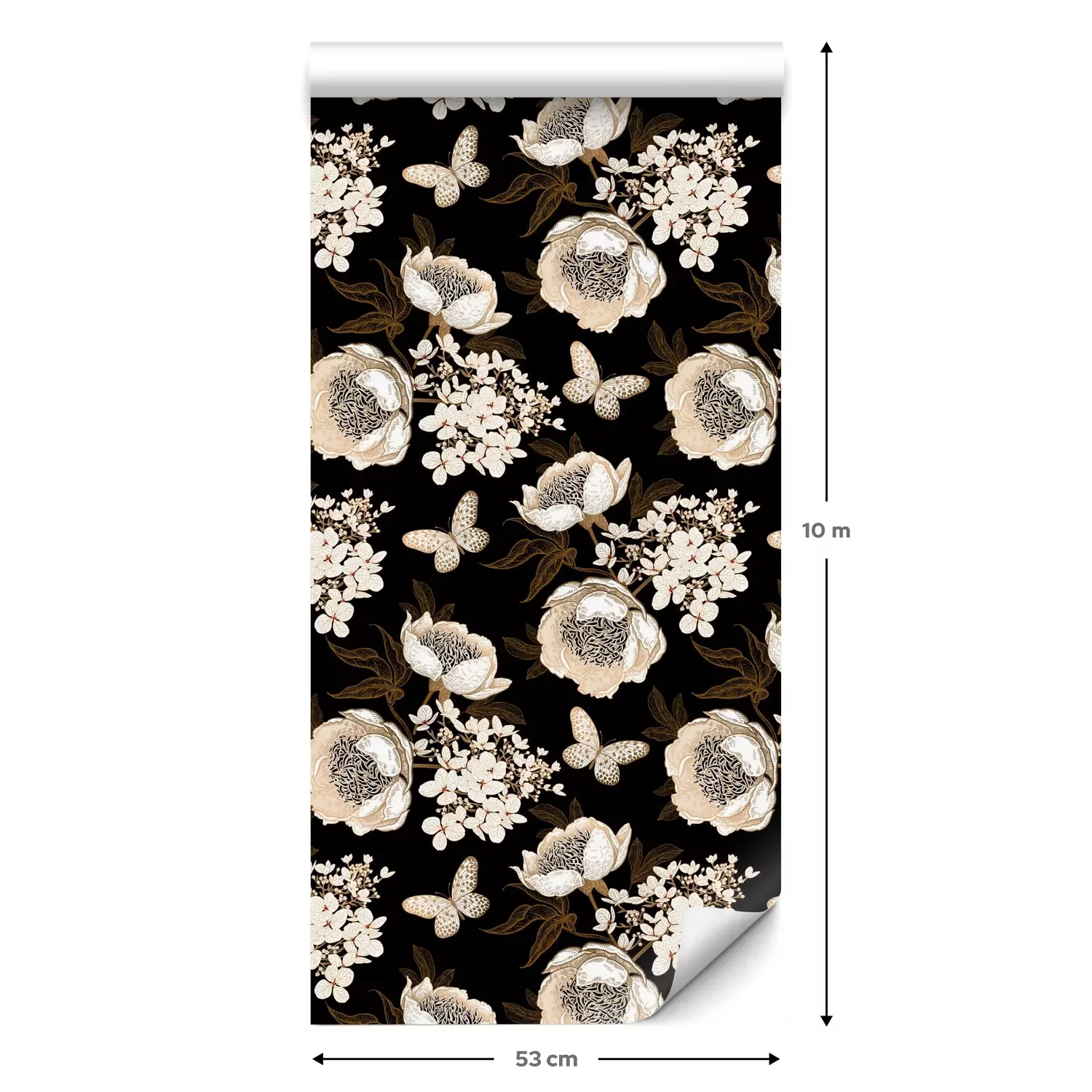 Eine Standard-Tapetenrolle hat die Maße 0,53 m x 10 m und deckt eine Wandfläche von etwa 5 m² ab.