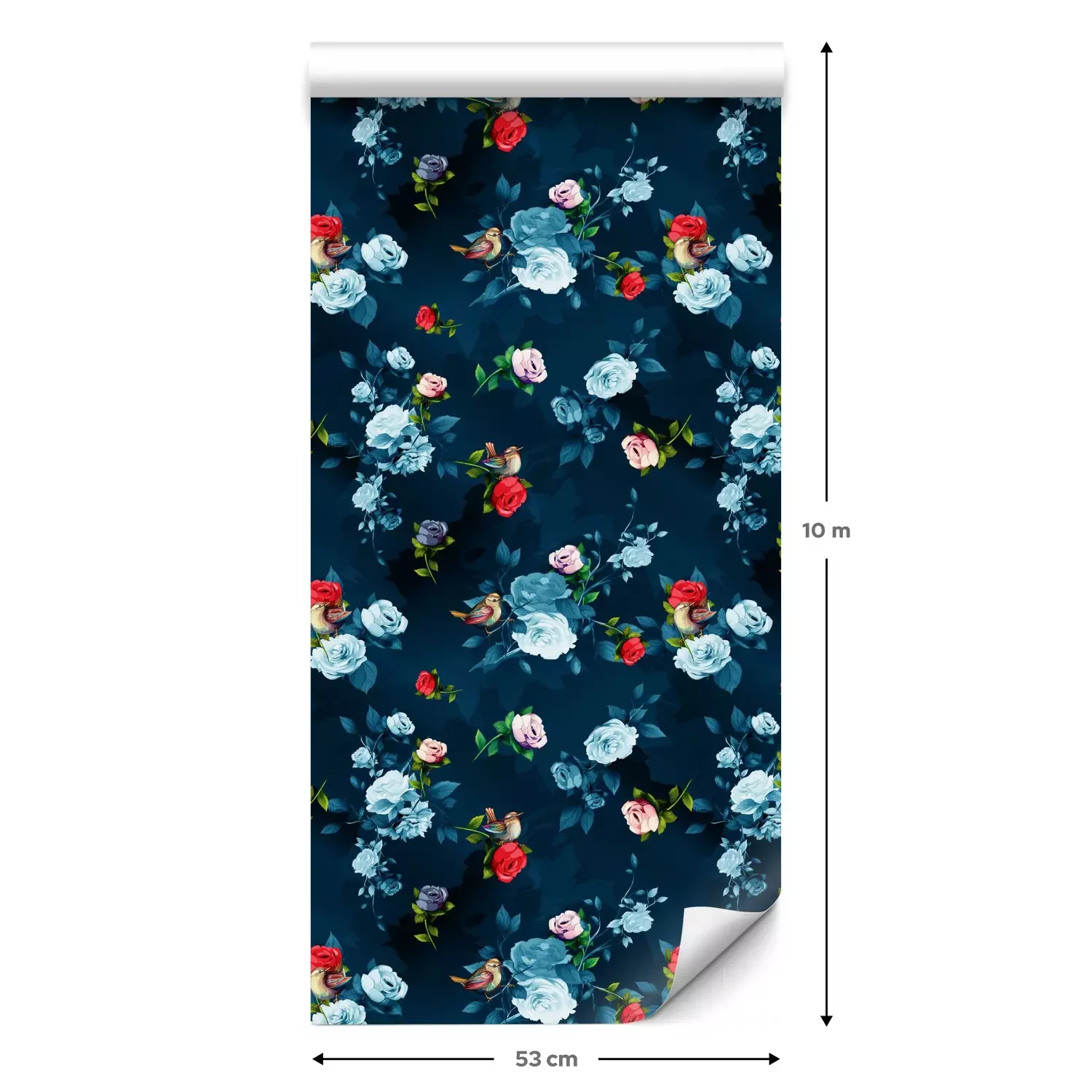 Eine Standard-Tapetenrolle hat die Maße 0,53 m x 10 m und deckt eine Wandfläche von etwa 5 m² ab.