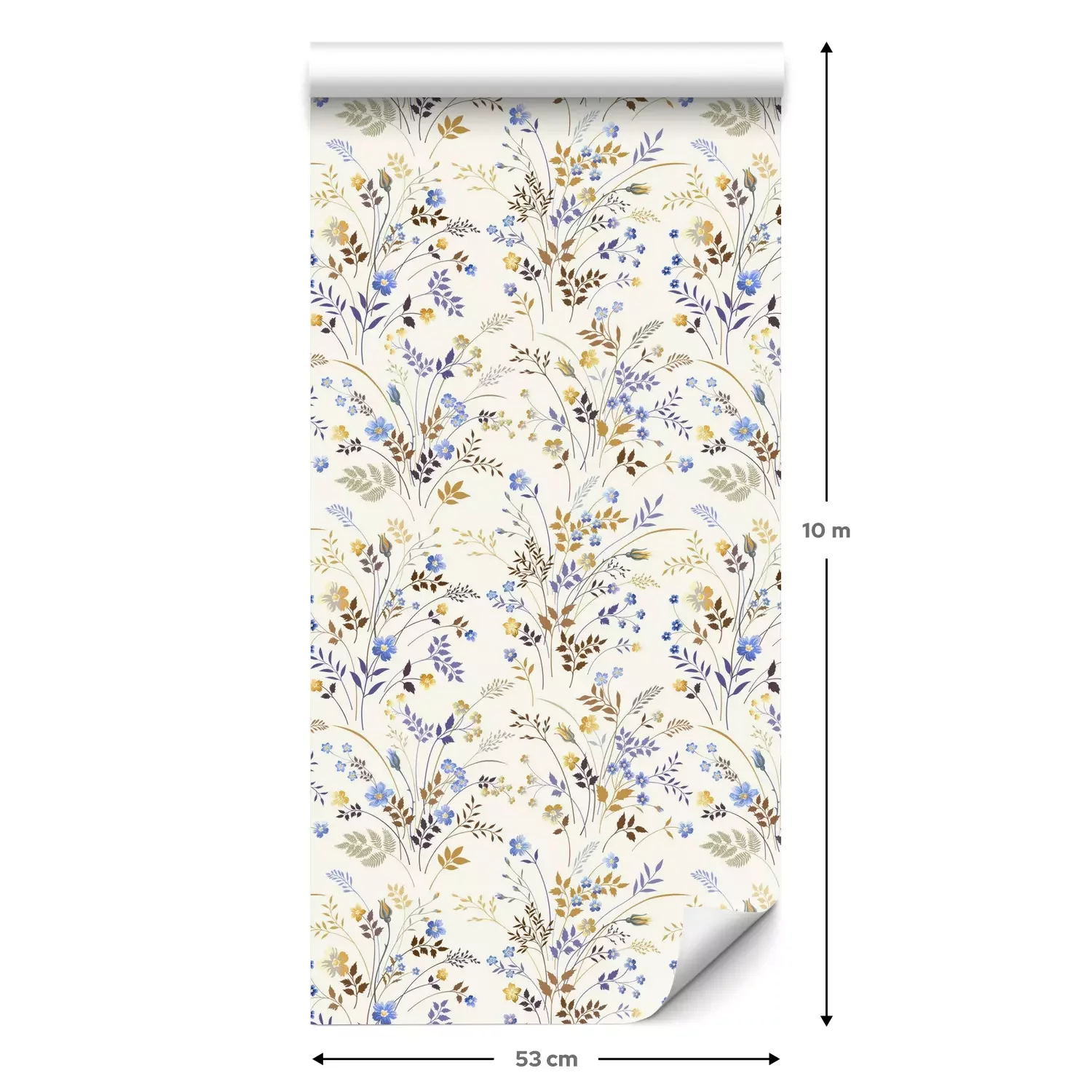 Eine Standard-Tapetenrolle hat die Maße 0,53 m x 10 m und deckt eine Wandfläche von etwa 5 m² ab.
