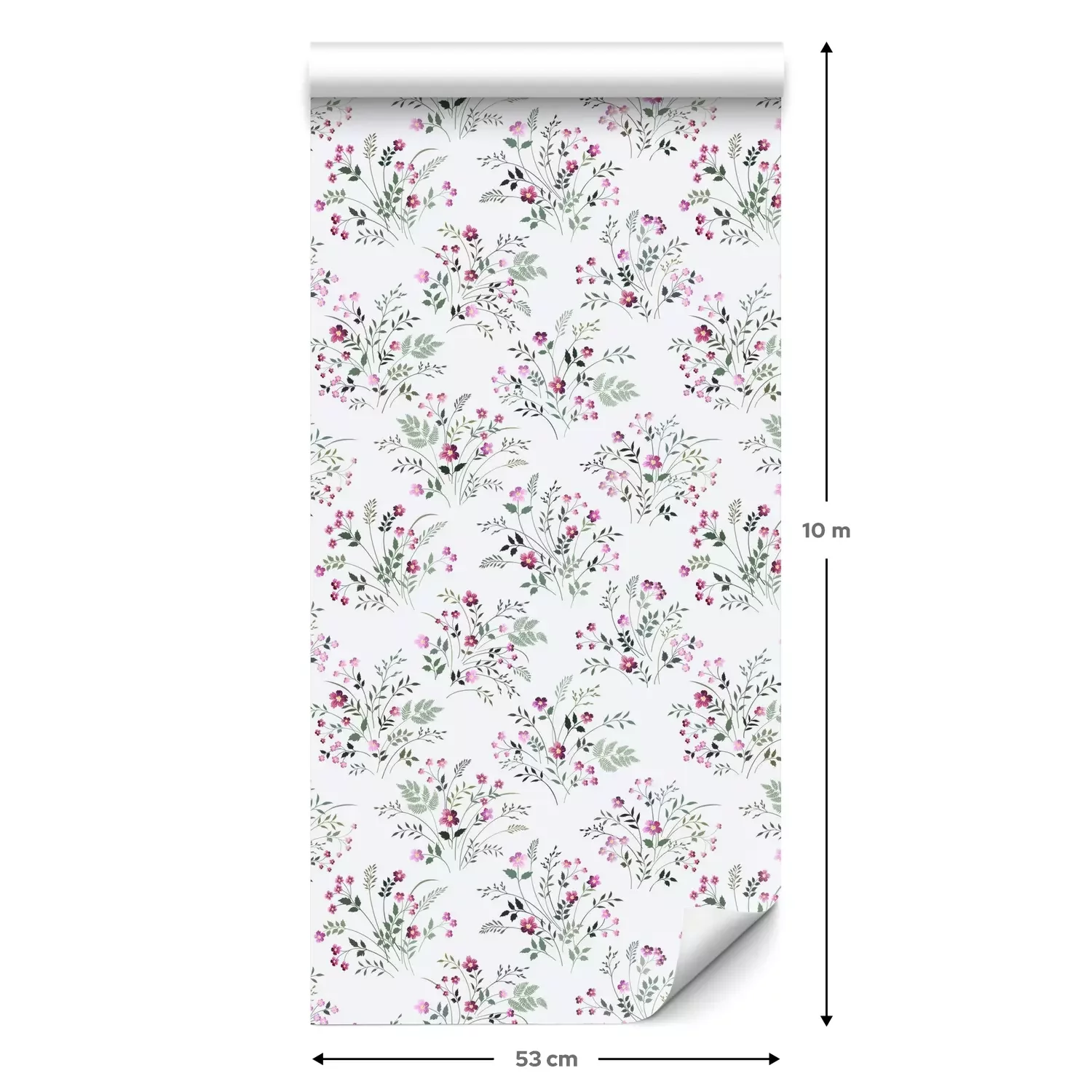 Eine Standard-Tapetenrolle hat die Maße 0,53 m x 10 m und deckt eine Wandfläche von etwa 5 m² ab.