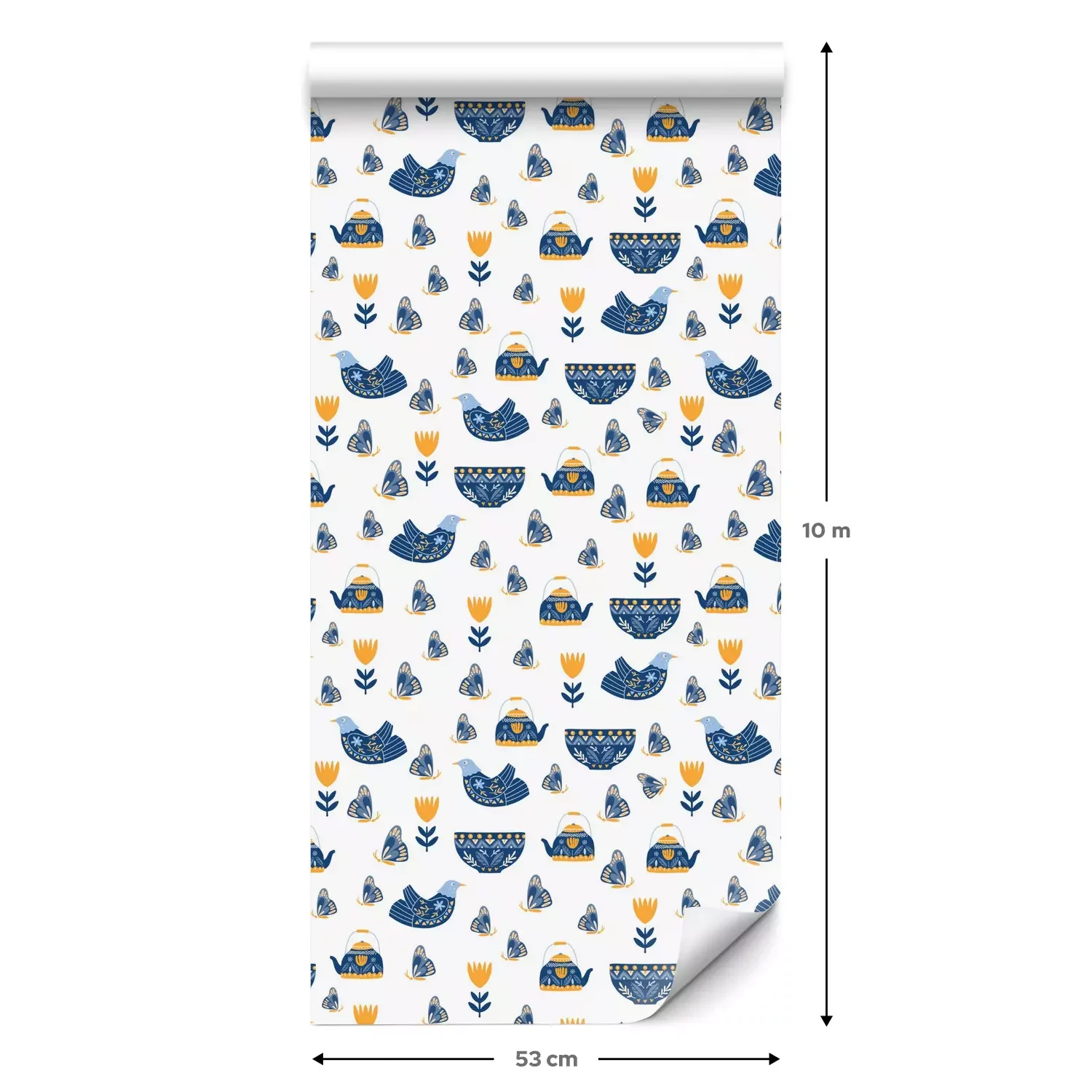Eine Standard-Tapetenrolle hat die Maße 0,53 m x 10 m und deckt eine Wandfläche von etwa 5 m² ab.