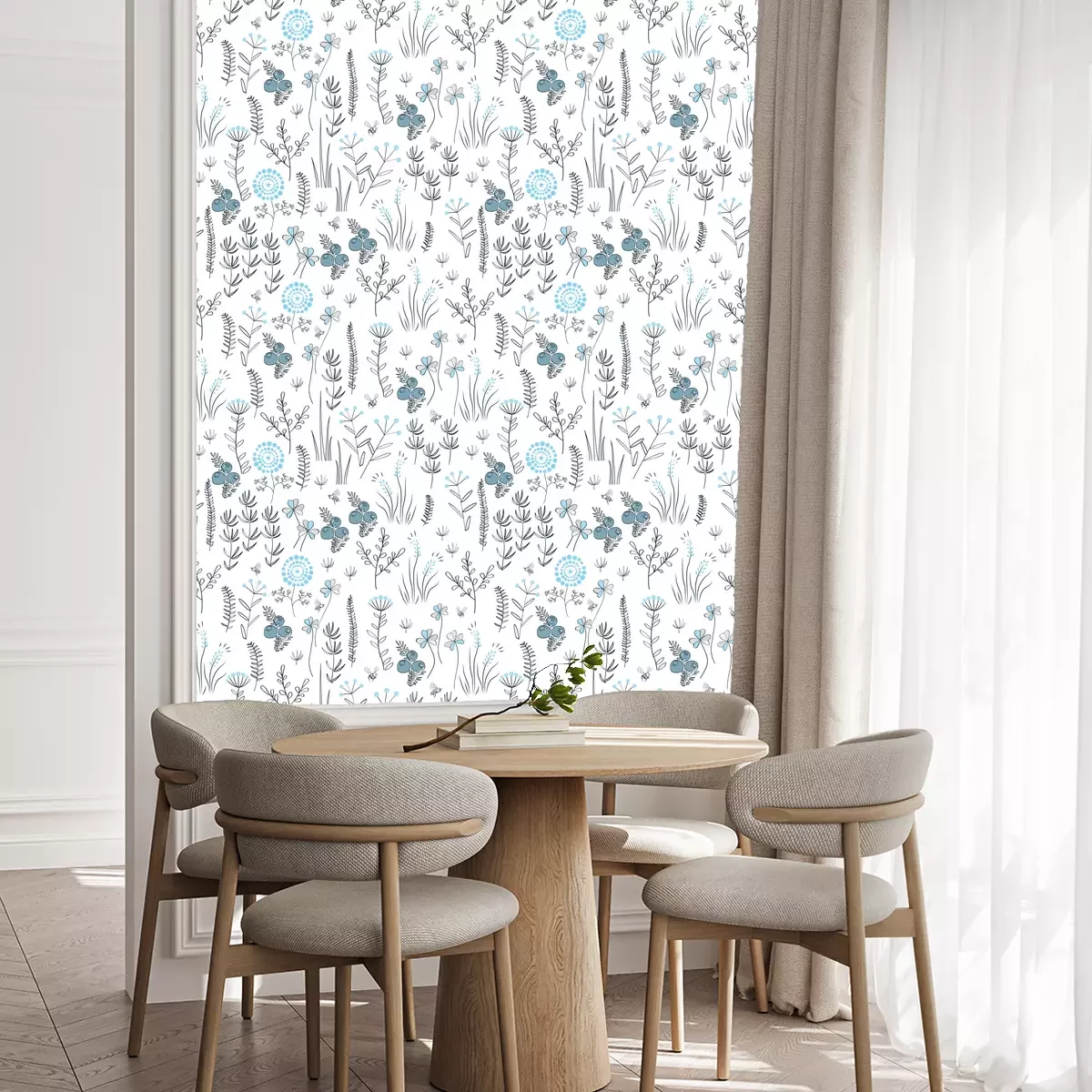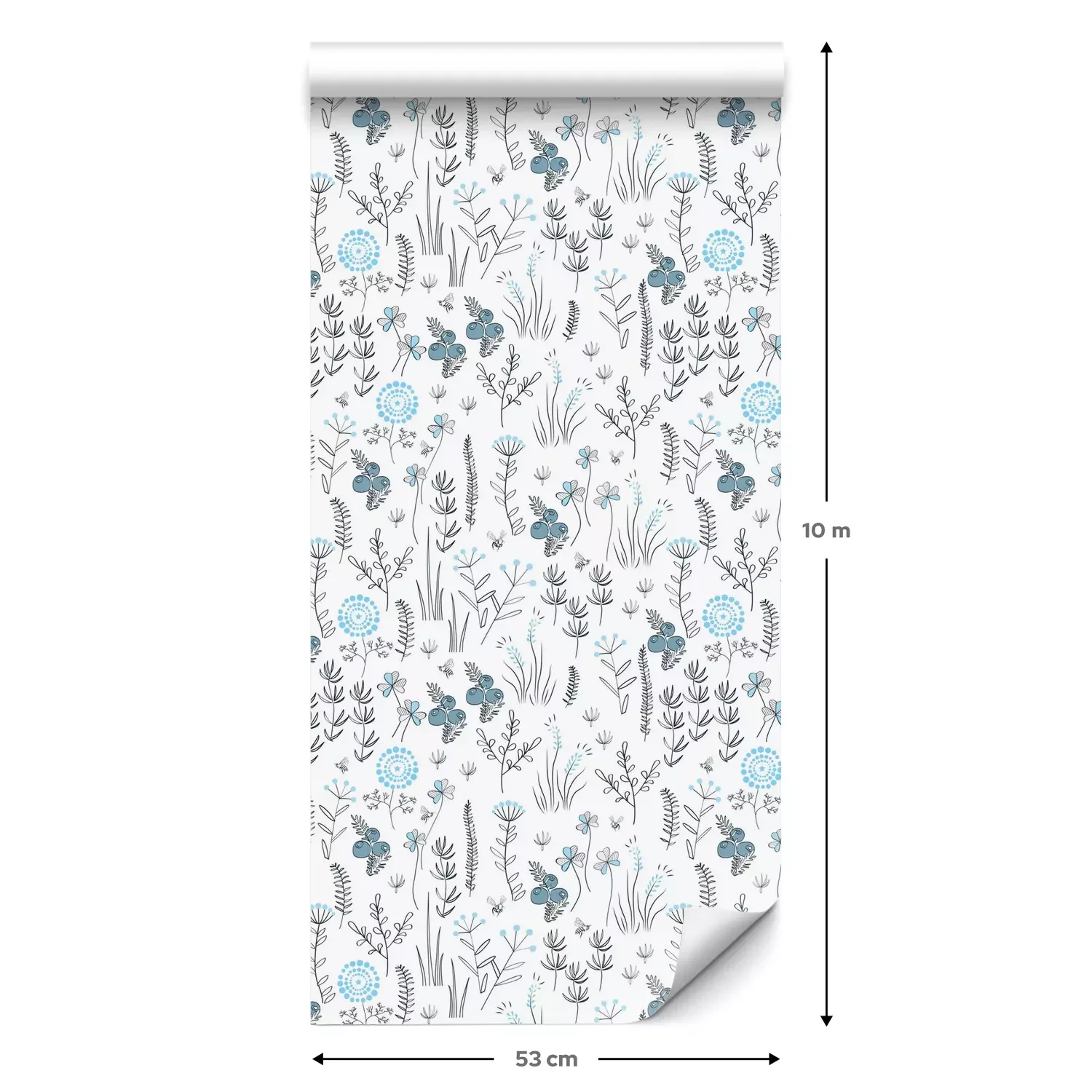 Eine Standard-Tapetenrolle hat die Maße 0,53 m x 10 m und deckt eine Wandfläche von etwa 5 m² ab.