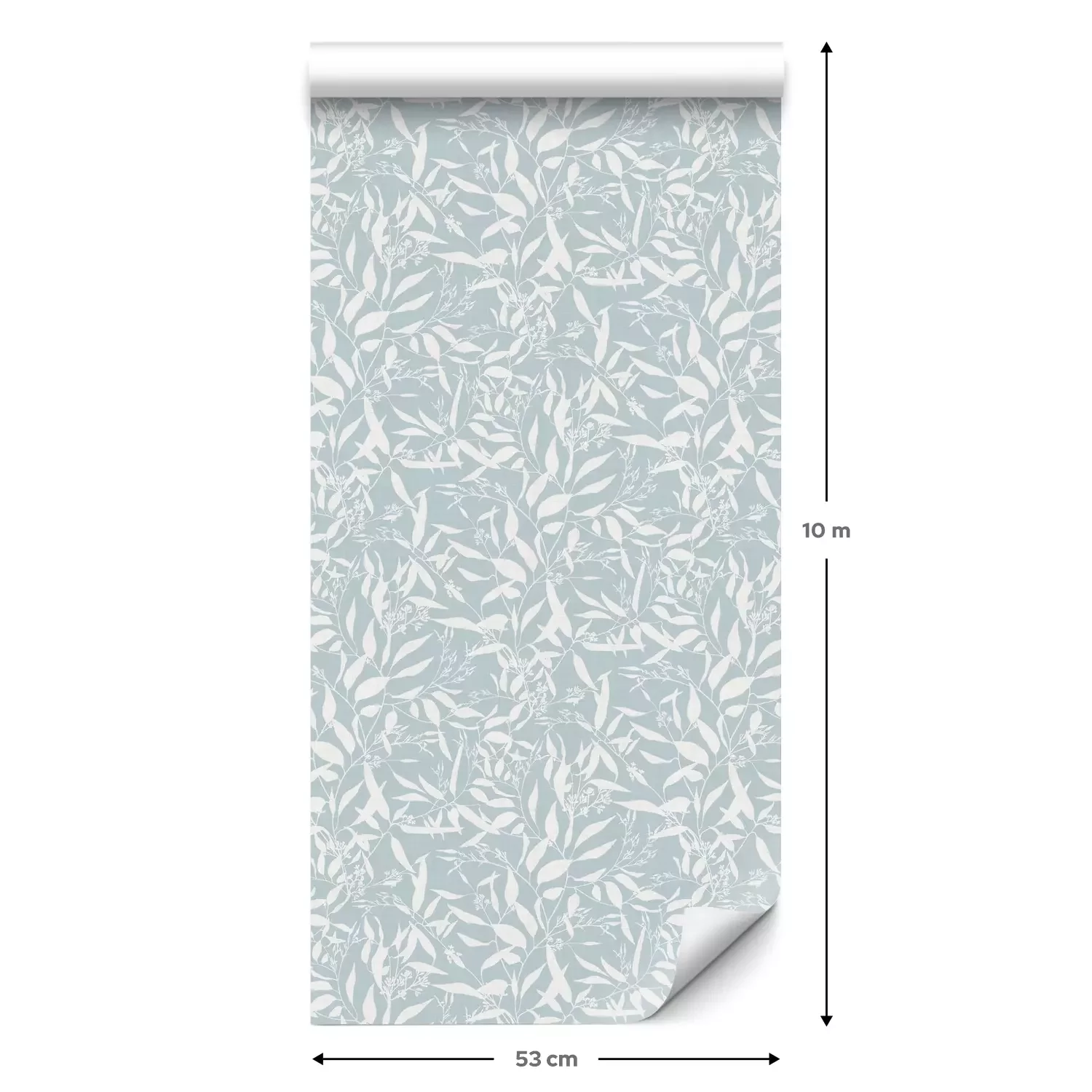 Eine Standard-Tapetenrolle hat die Maße 0,53 m x 10 m und deckt eine Wandfläche von etwa 5 m² ab.