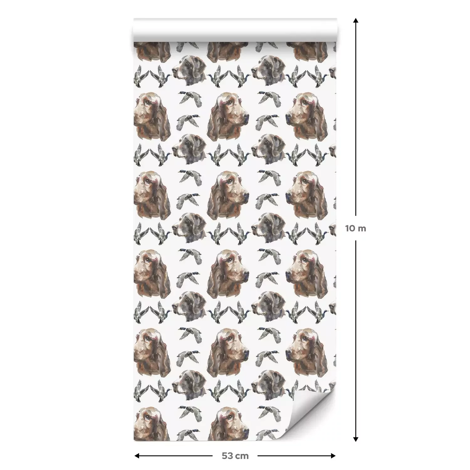 Eine Standard-Tapetenrolle hat die Maße 0,53 m x 10 m und deckt eine Wandfläche von etwa 5 m² ab.