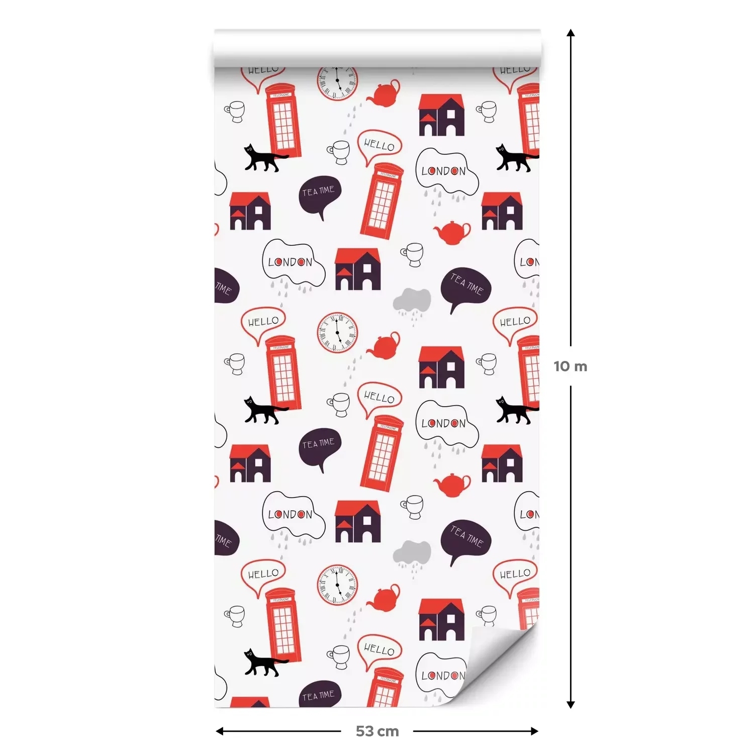 Eine Standard-Tapetenrolle hat die Maße 0,53 m x 10 m und deckt eine Wandfläche von etwa 5 m² ab.