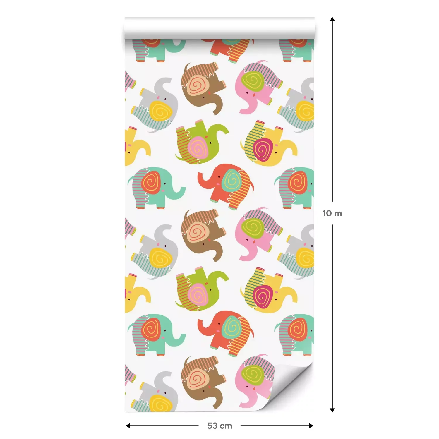Eine Standard-Tapetenrolle hat die Maße 0,53 m x 10 m und deckt eine Wandfläche von etwa 5 m² ab.