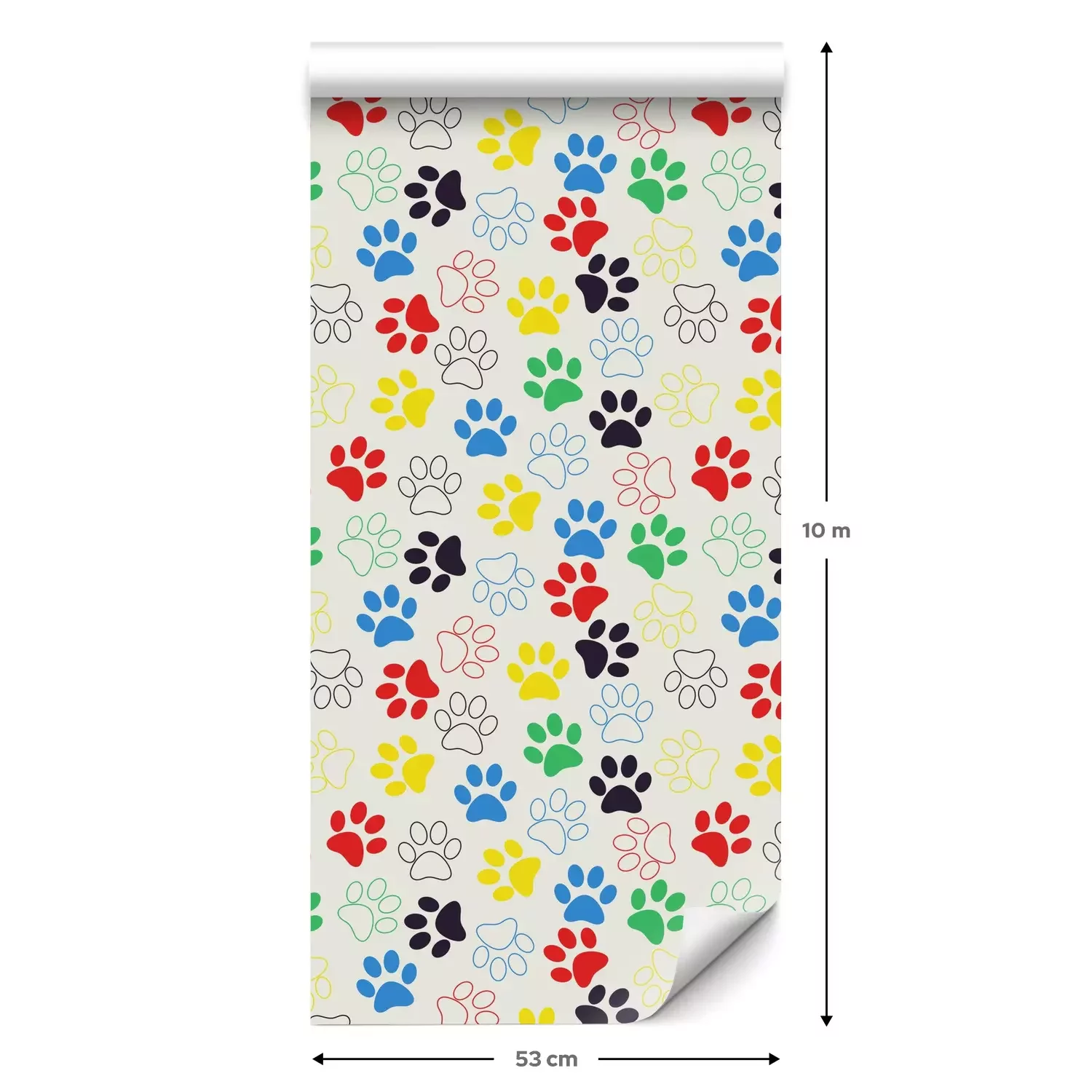 Eine Standard-Tapetenrolle hat die Maße 0,53 m x 10 m und deckt eine Wandfläche von etwa 5 m² ab.
