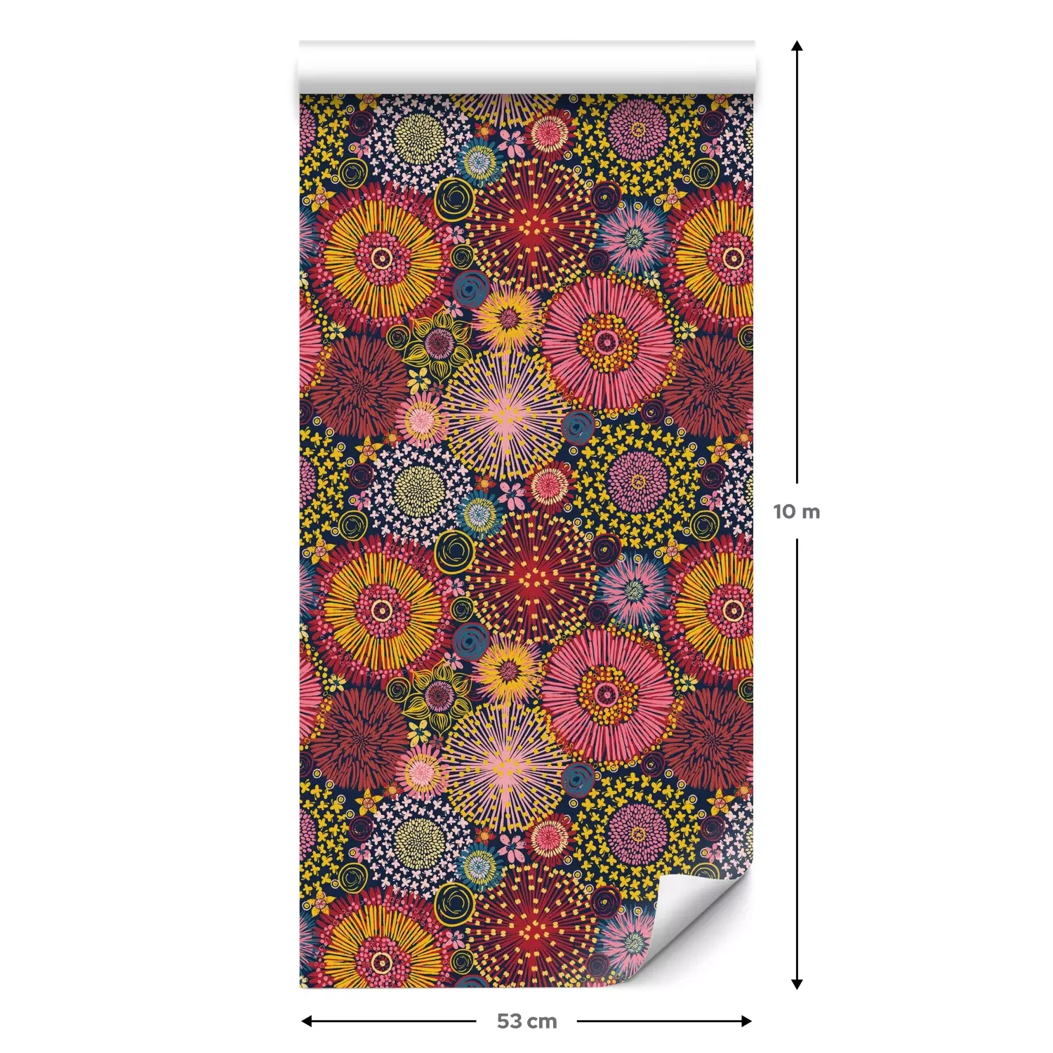 Eine Standard-Tapetenrolle hat die Maße 0,53 m x 10 m und deckt eine Wandfläche von etwa 5 m² ab.