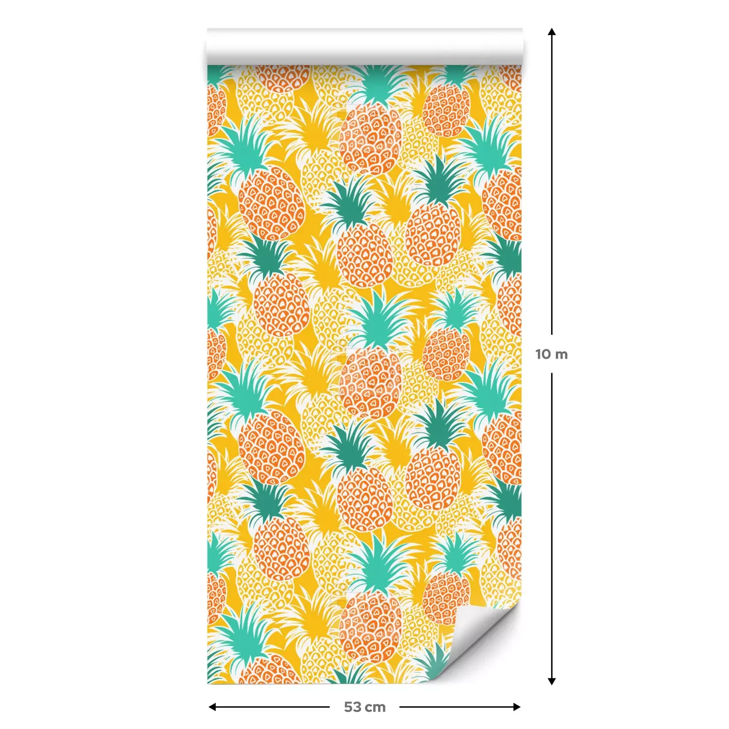 Eine Standard-Tapetenrolle hat die Maße 0,53 m x 10 m und deckt eine Wandfläche von etwa 5 m² ab.