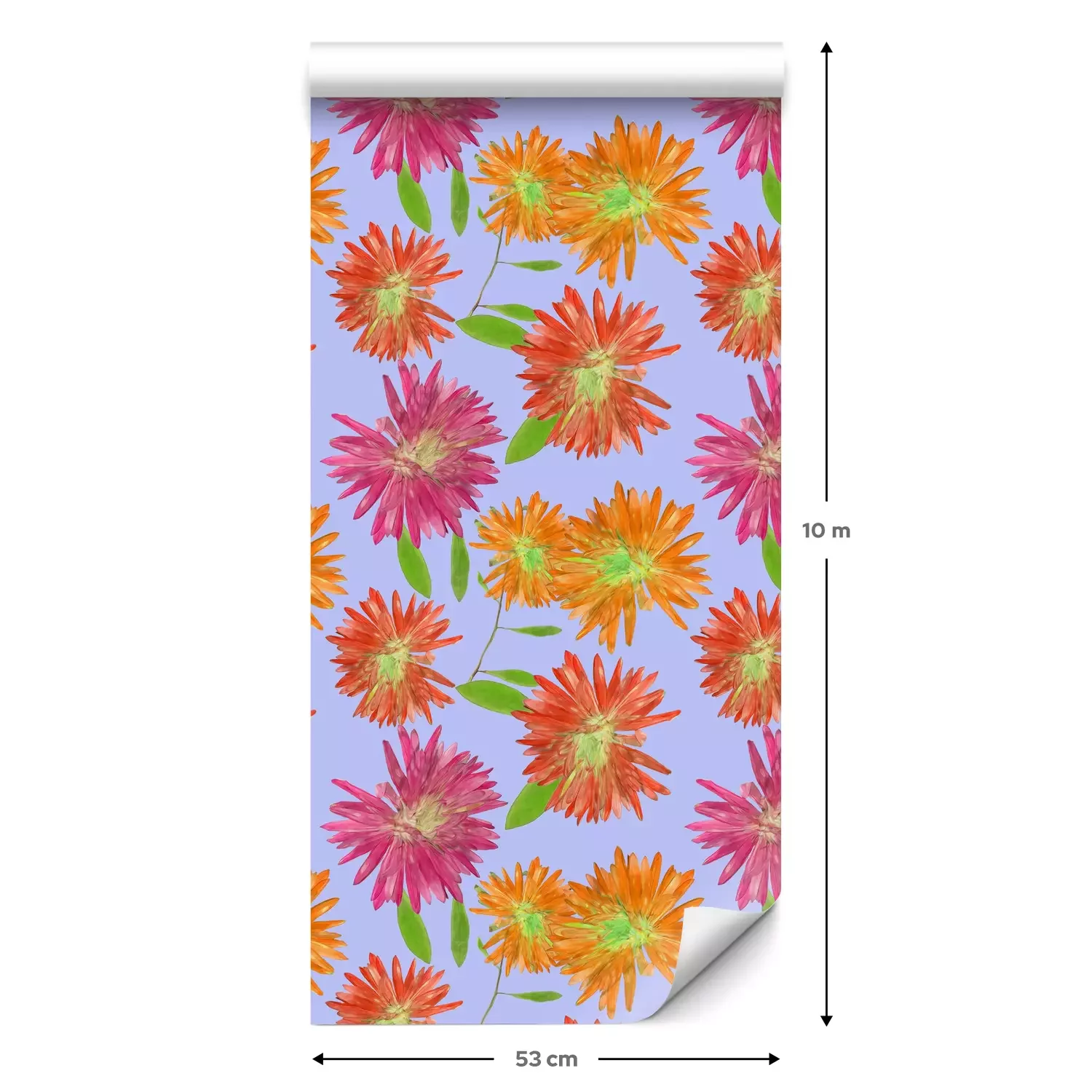 Eine Standard-Tapetenrolle hat die Maße 0,53 m x 10 m und deckt eine Wandfläche von etwa 5 m² ab.