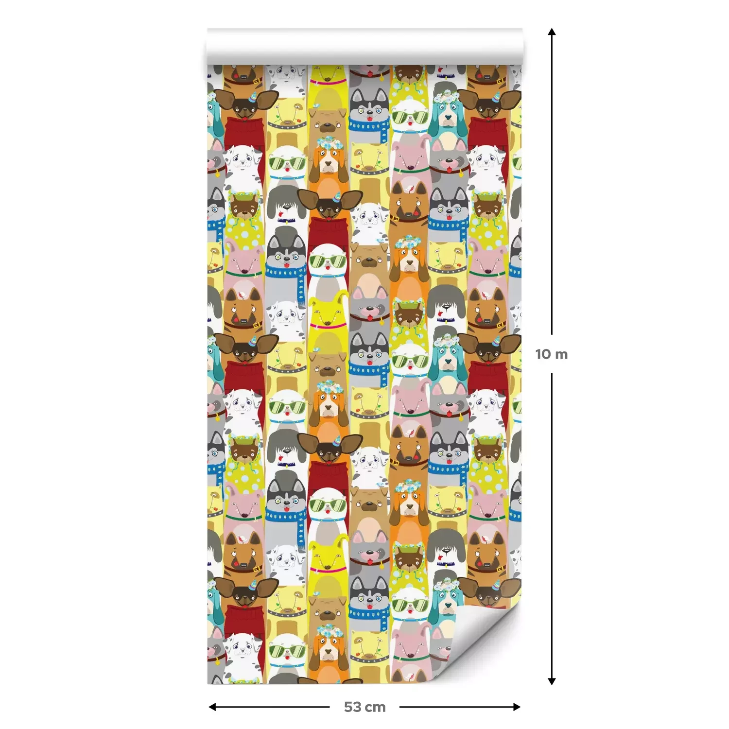 Eine Standard-Tapetenrolle hat die Maße 0,53 m x 10 m und deckt eine Wandfläche von etwa 5 m² ab.