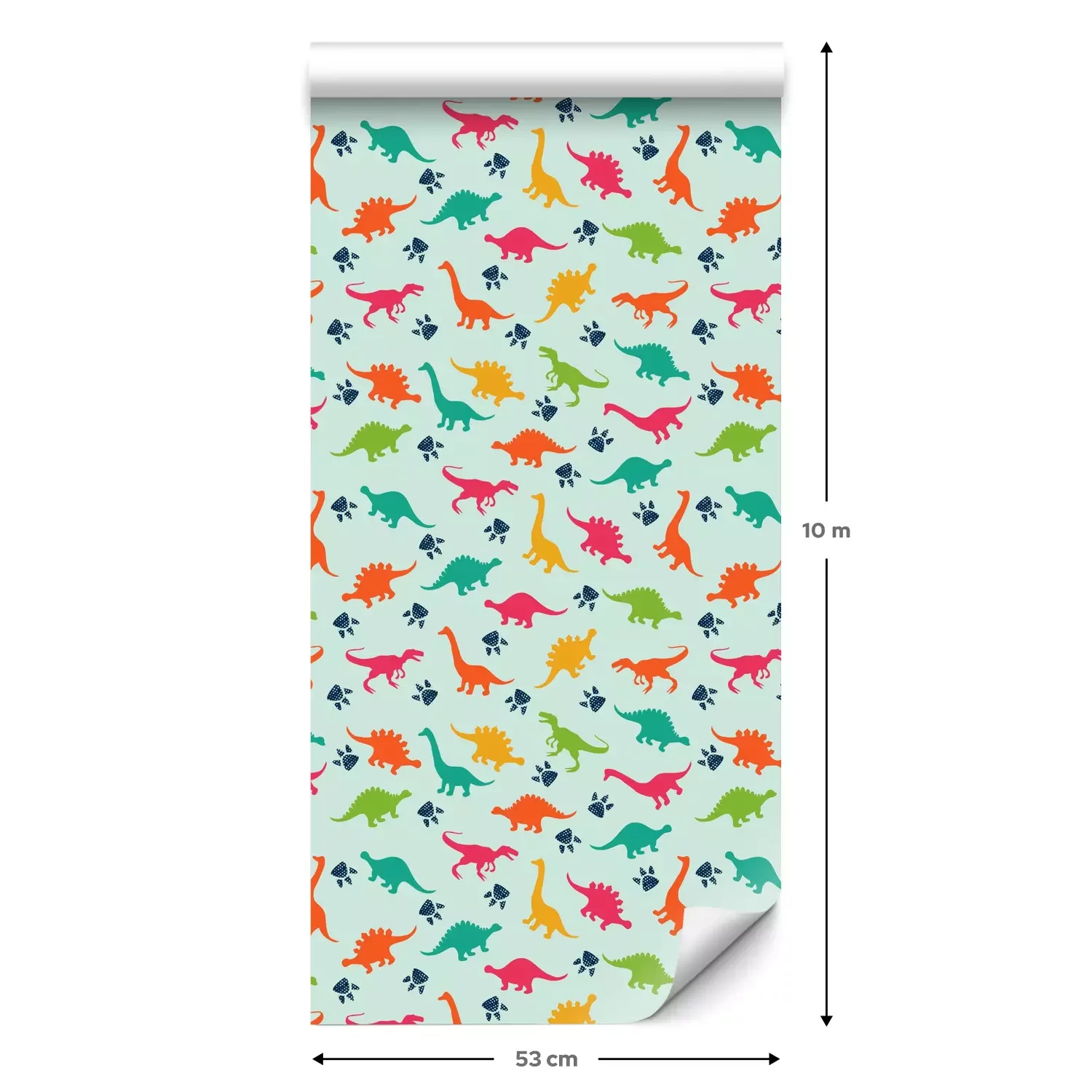 Eine Standard-Tapetenrolle hat die Maße 0,53 m x 10 m und deckt eine Wandfläche von etwa 5 m² ab.