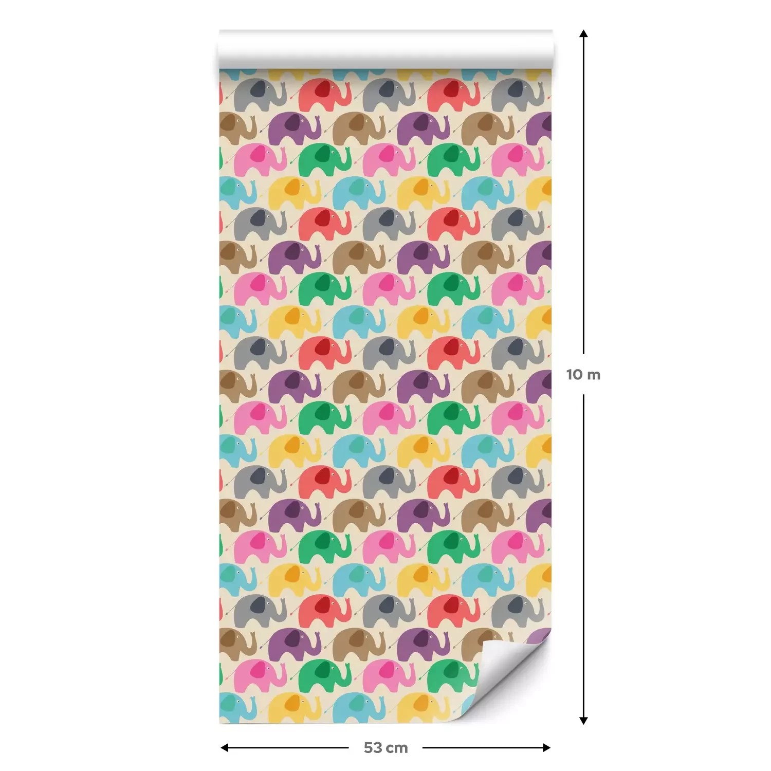 Eine Standard-Tapetenrolle hat die Maße 0,53 m x 10 m und deckt eine Wandfläche von etwa 5 m² ab.