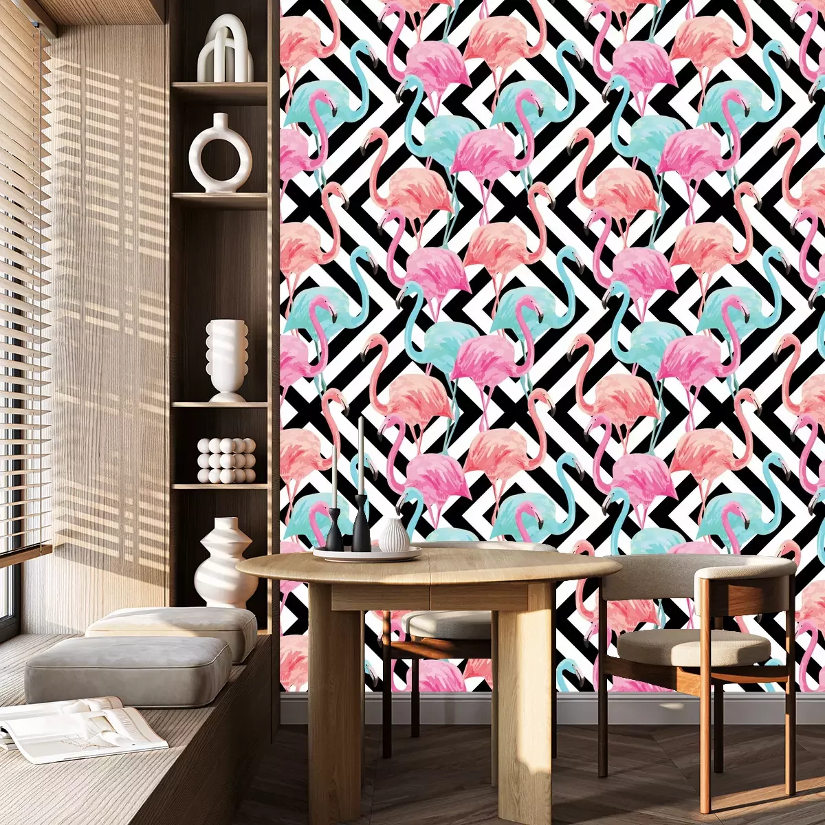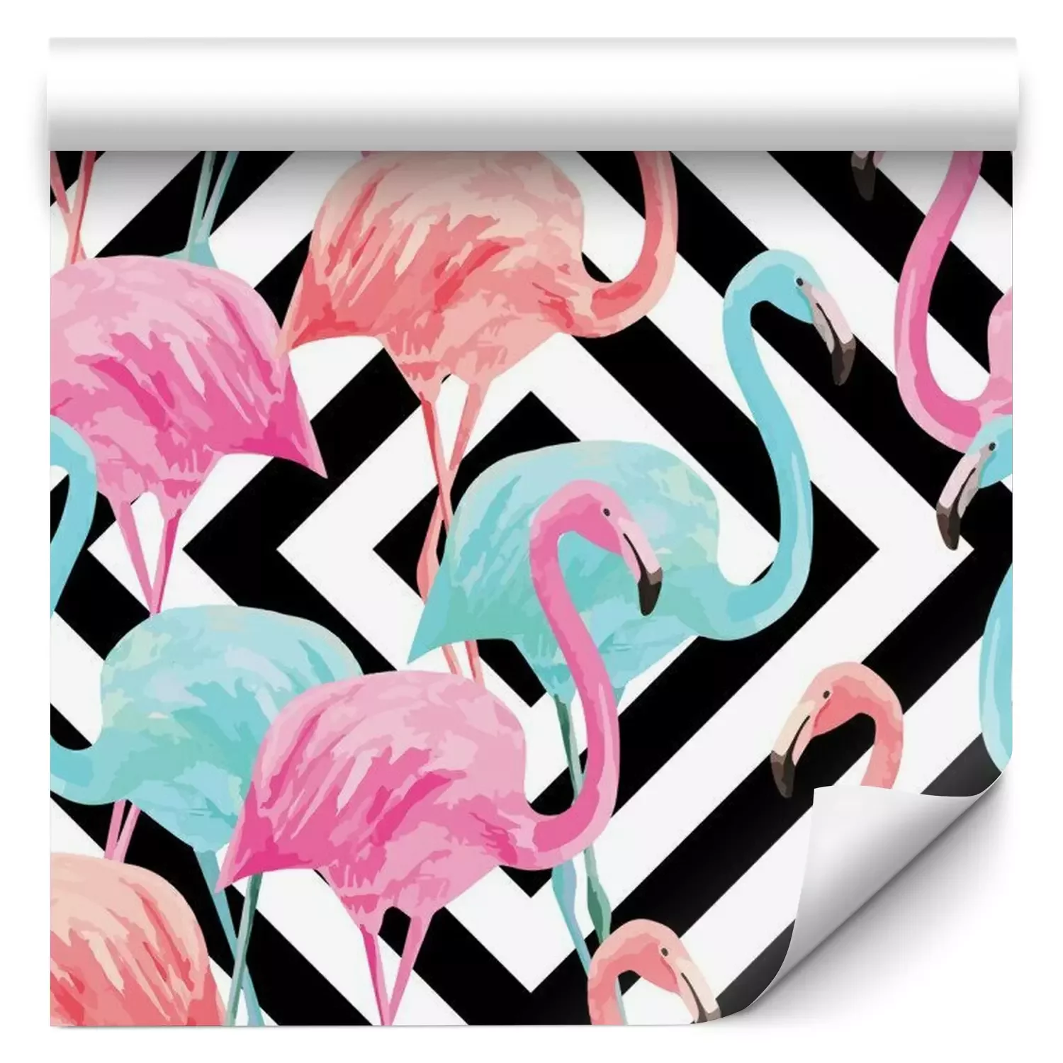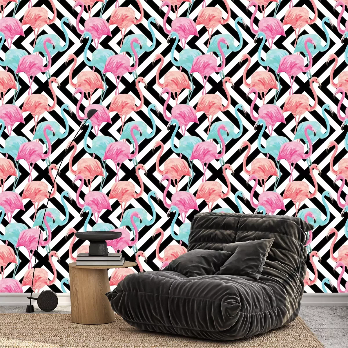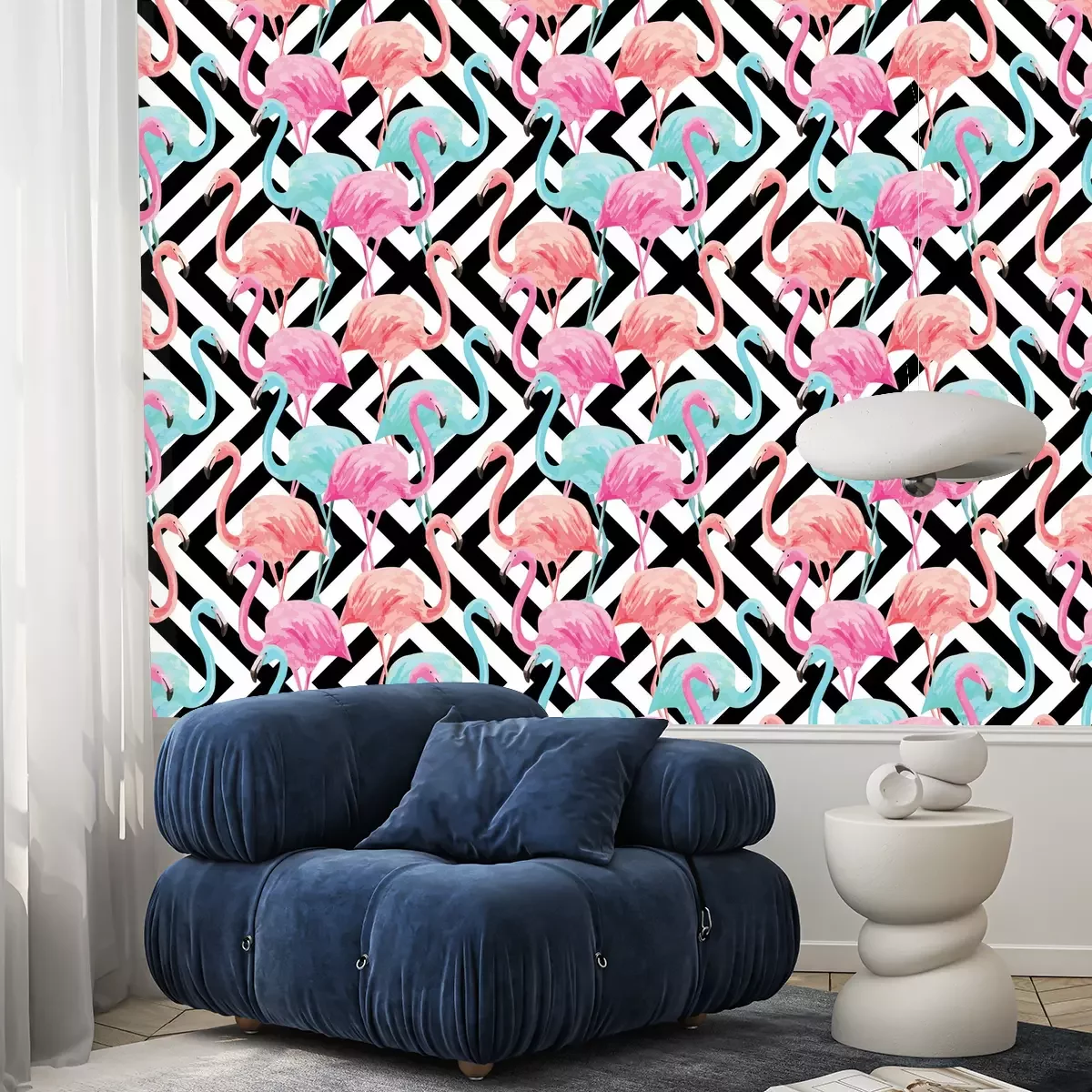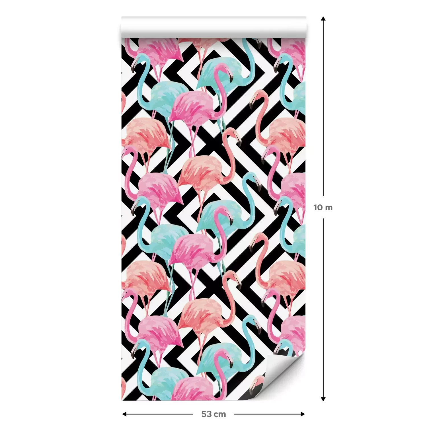 Rosa Flamingos mit Streifen im HintergrundTapete