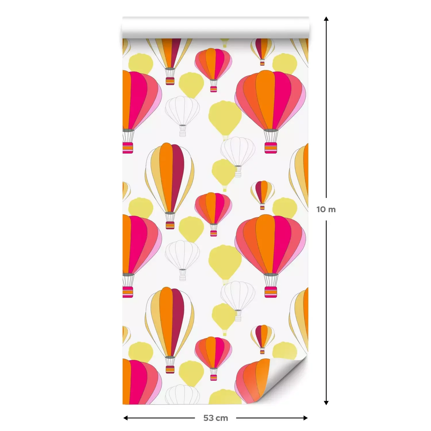 Eine Standard-Tapetenrolle hat die Maße 0,53 m x 10 m und deckt eine Wandfläche von etwa 5 m² ab.