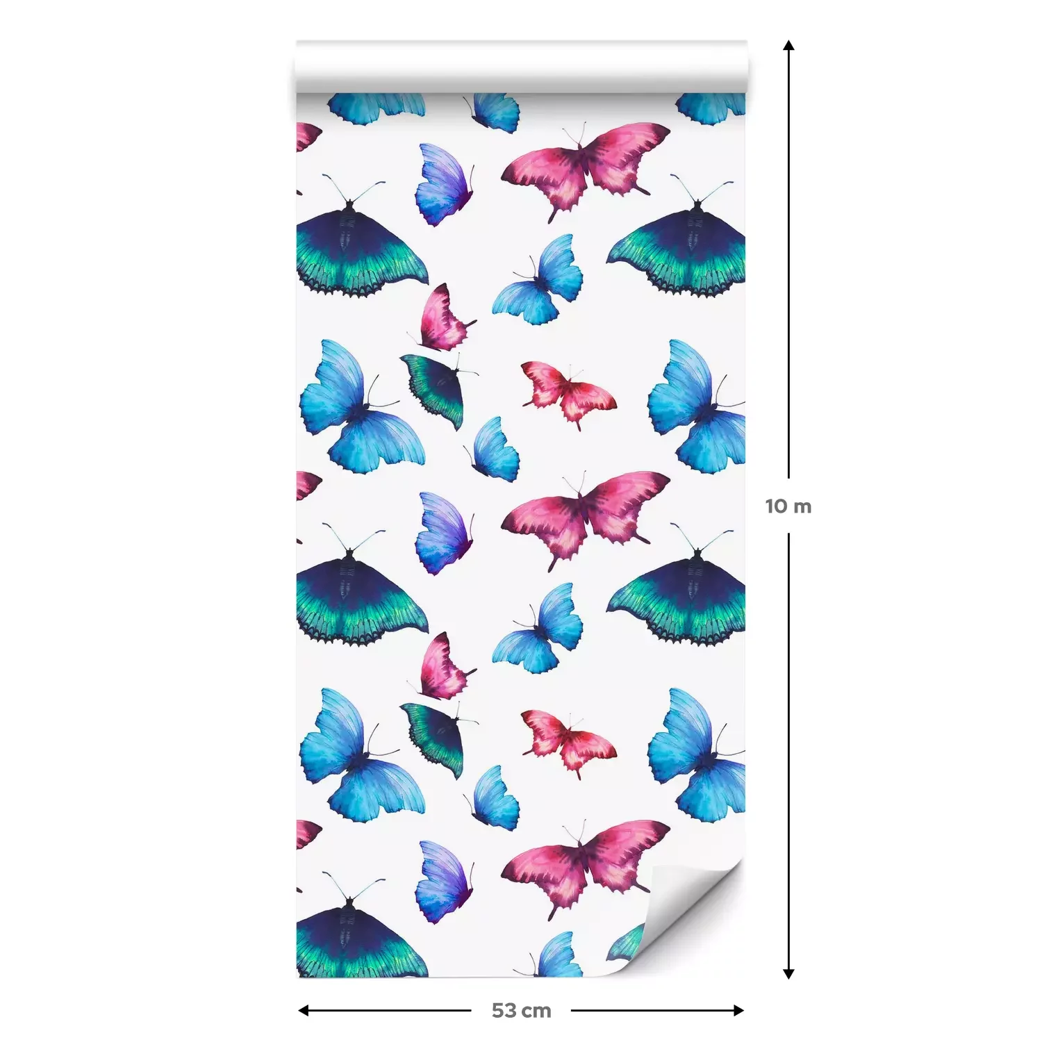 Eine Standard-Tapetenrolle hat die Maße 0,53 m x 10 m und deckt eine Wandfläche von etwa 5 m² ab.