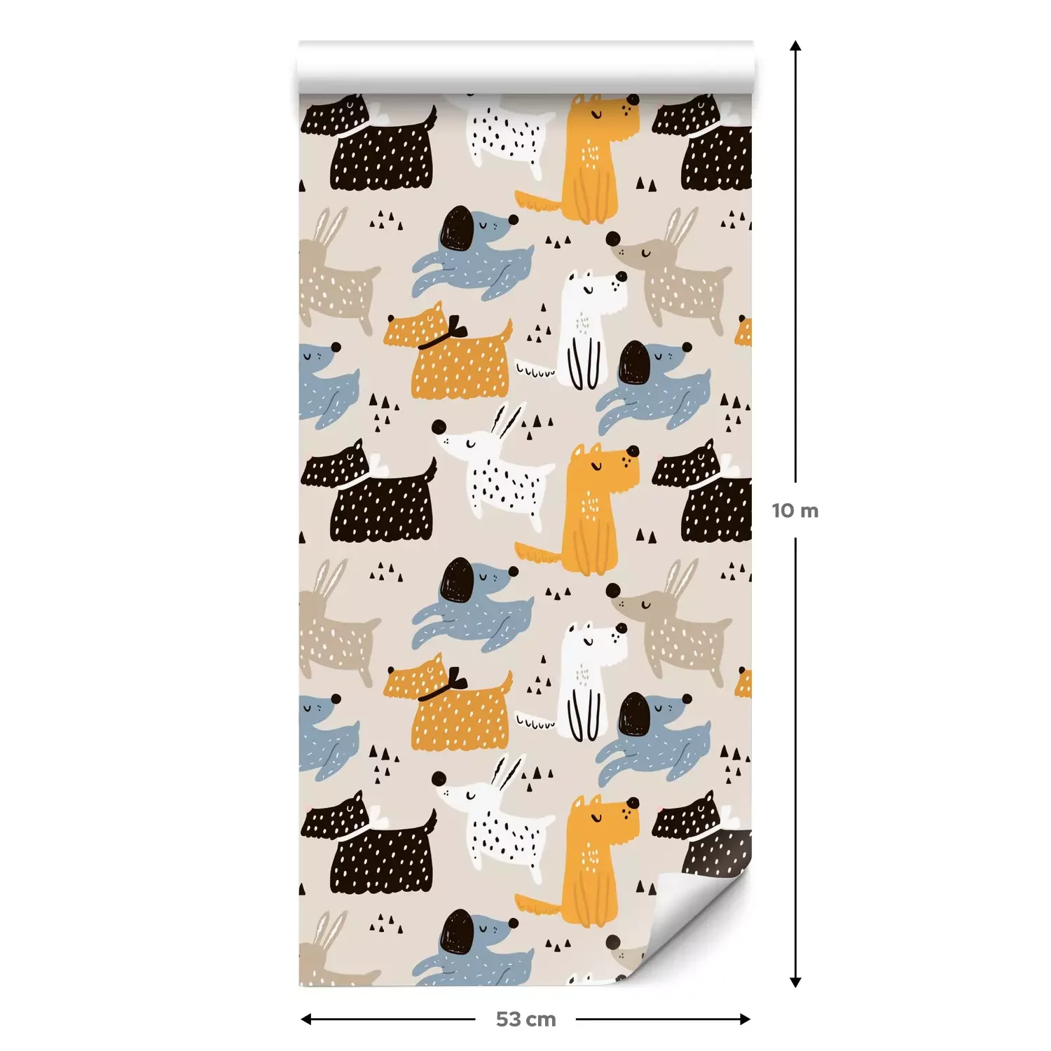 Eine Standard-Tapetenrolle hat die Maße 0,53 m x 10 m und deckt eine Wandfläche von etwa 5 m² ab.