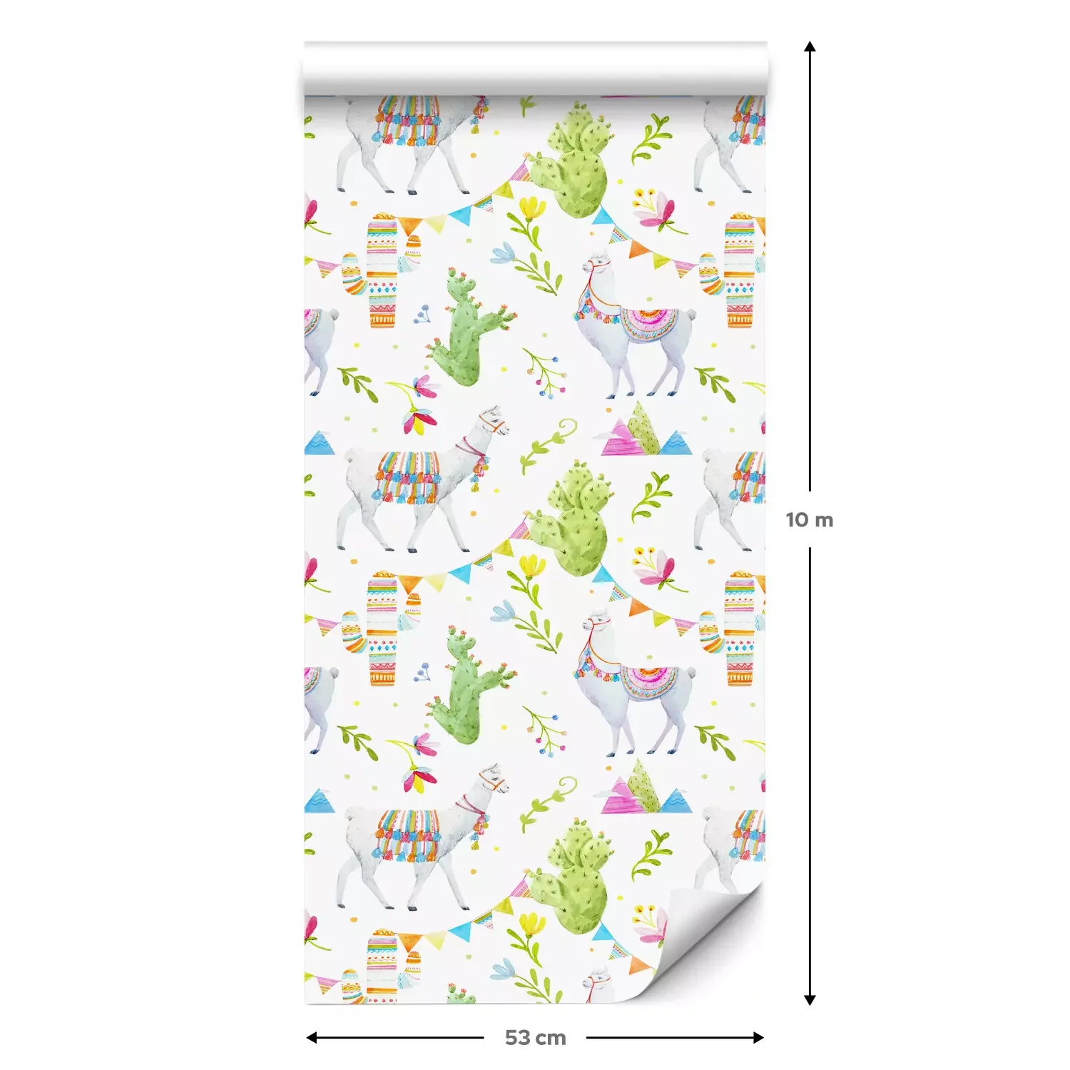 Eine Standard-Tapetenrolle hat die Maße 0,53 m x 10 m und deckt eine Wandfläche von etwa 5 m² ab.