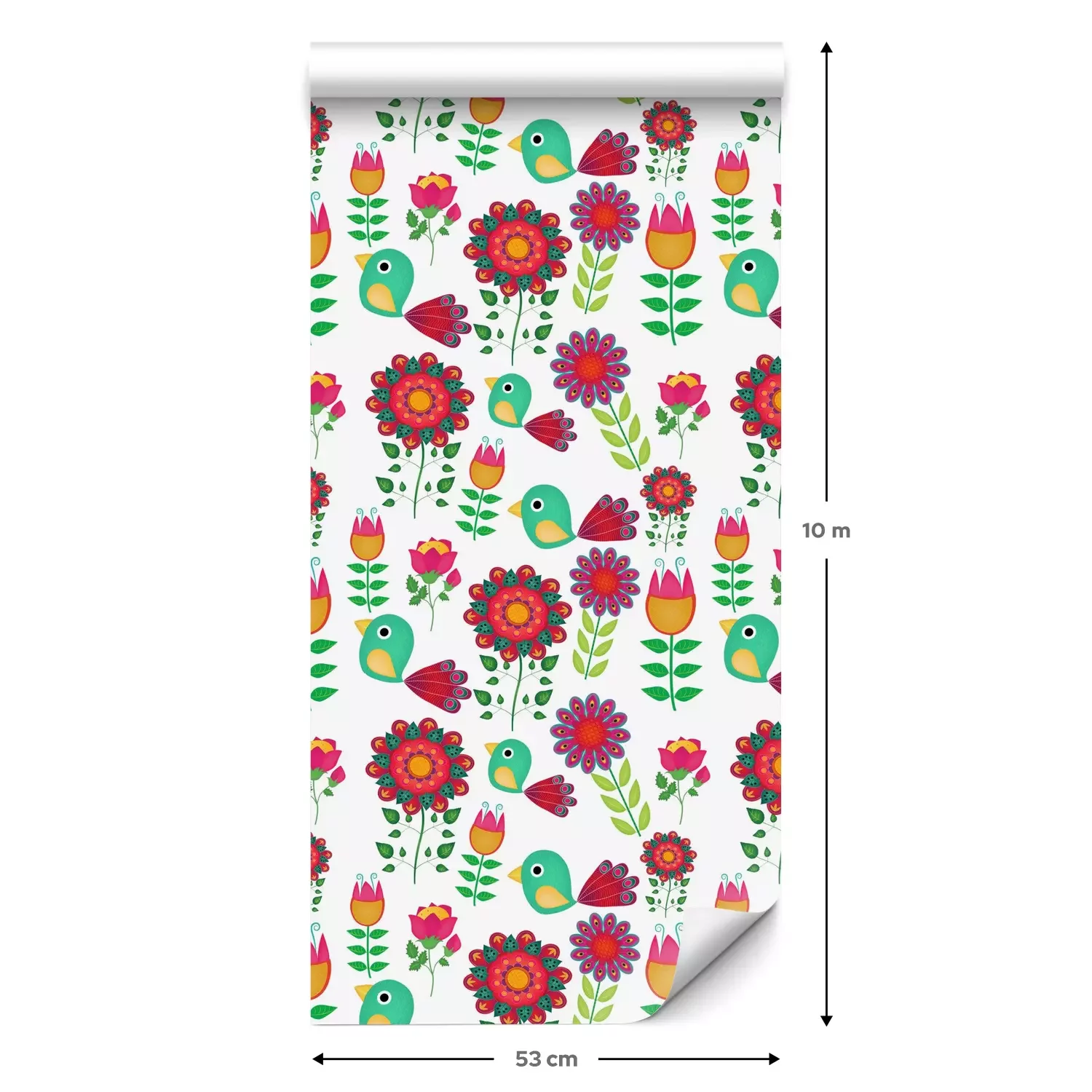 Eine Standard-Tapetenrolle hat die Maße 0,53 m x 10 m und deckt eine Wandfläche von etwa 5 m² ab.