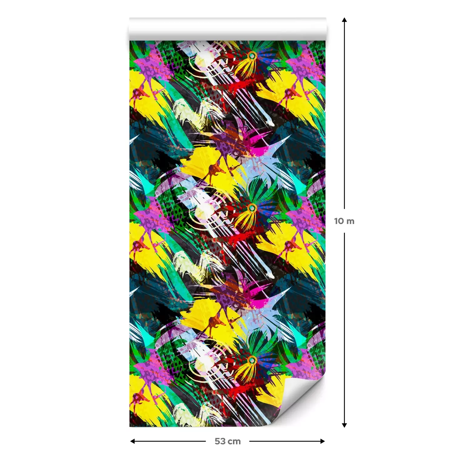 Eine Standard-Tapetenrolle hat die Maße 0,53 m x 10 m und deckt eine Wandfläche von etwa 5 m² ab.