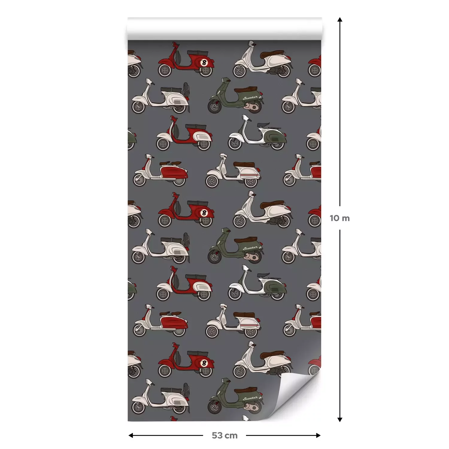 Eine Standard-Tapetenrolle hat die Maße 0,53 m x 10 m und deckt eine Wandfläche von etwa 5 m² ab.