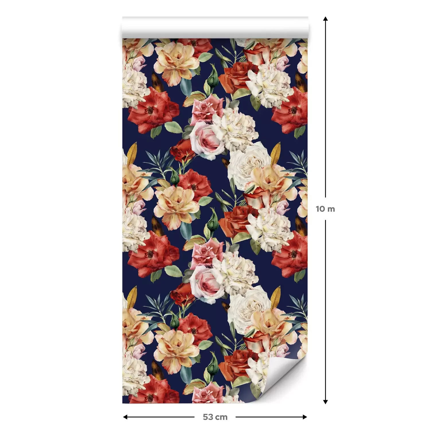 Eine Standard-Tapetenrolle hat die Maße 0,53 m x 10 m und deckt eine Wandfläche von etwa 5 m² ab.
