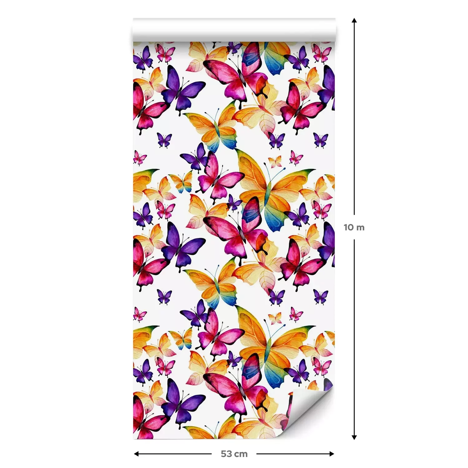 Eine Standard-Tapetenrolle hat die Maße 0,53 m x 10 m und deckt eine Wandfläche von etwa 5 m² ab.