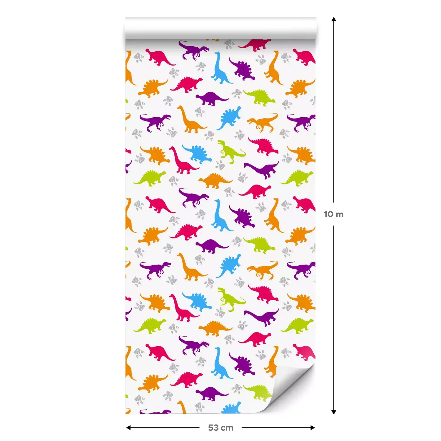 Eine Standard-Tapetenrolle hat die Maße 0,53 m x 10 m und deckt eine Wandfläche von etwa 5 m² ab.