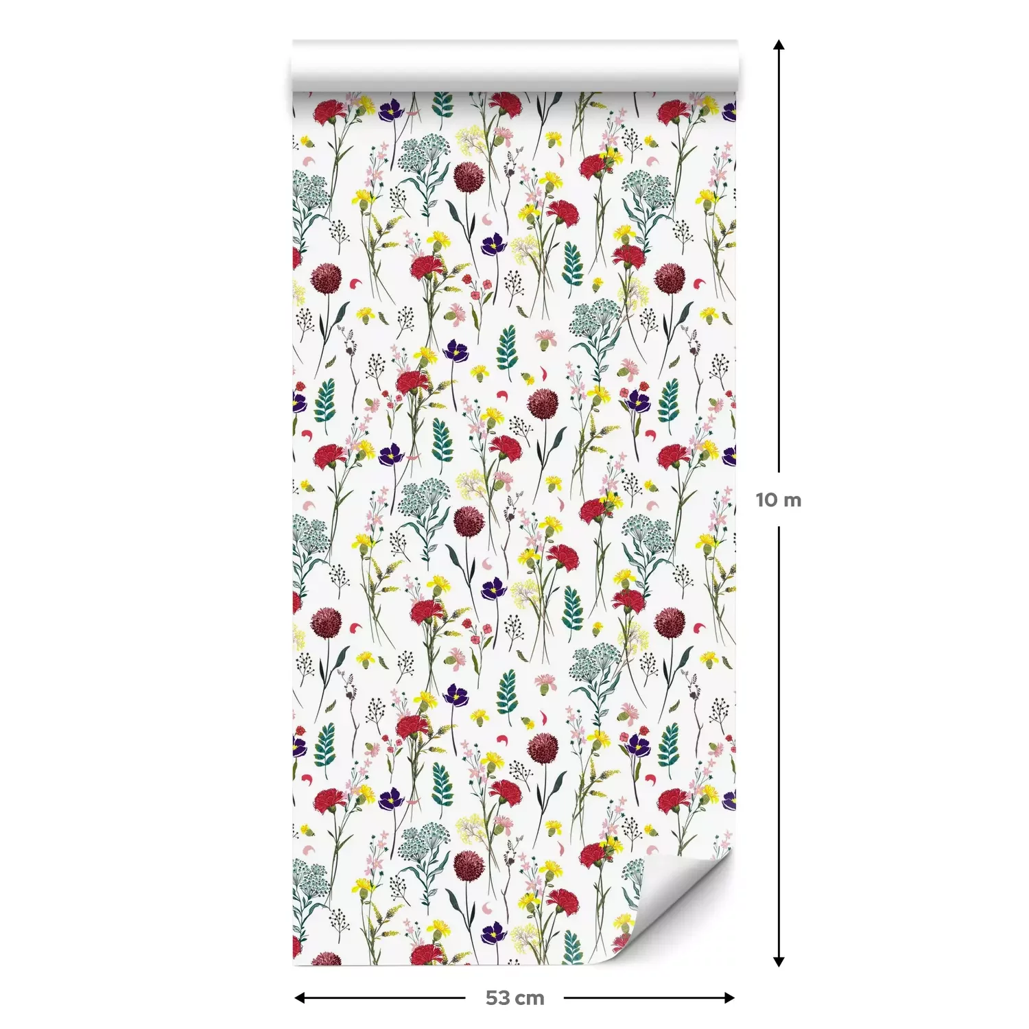 Eine Standard-Tapetenrolle hat die Maße 0,53 m x 10 m und deckt eine Wandfläche von etwa 5 m² ab.