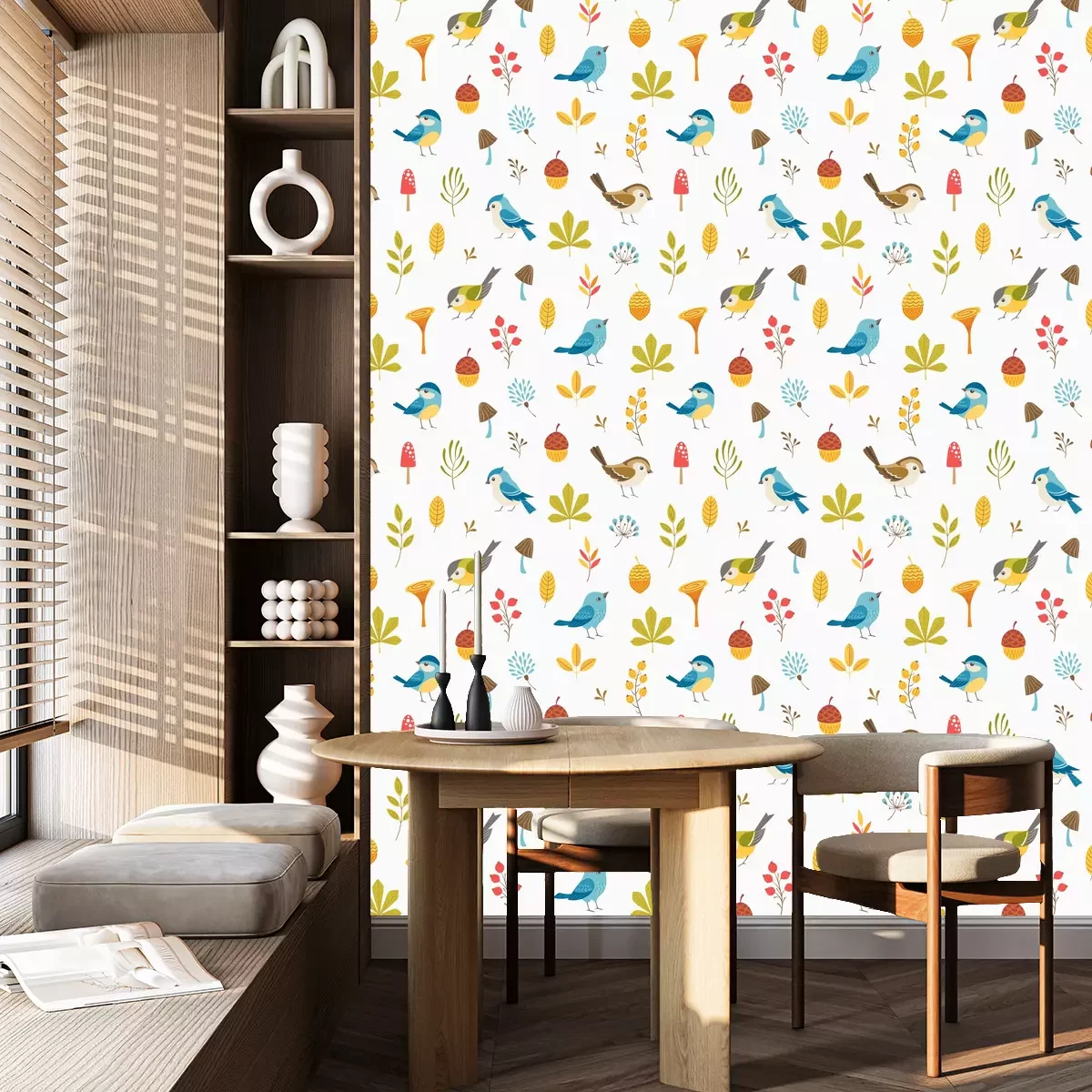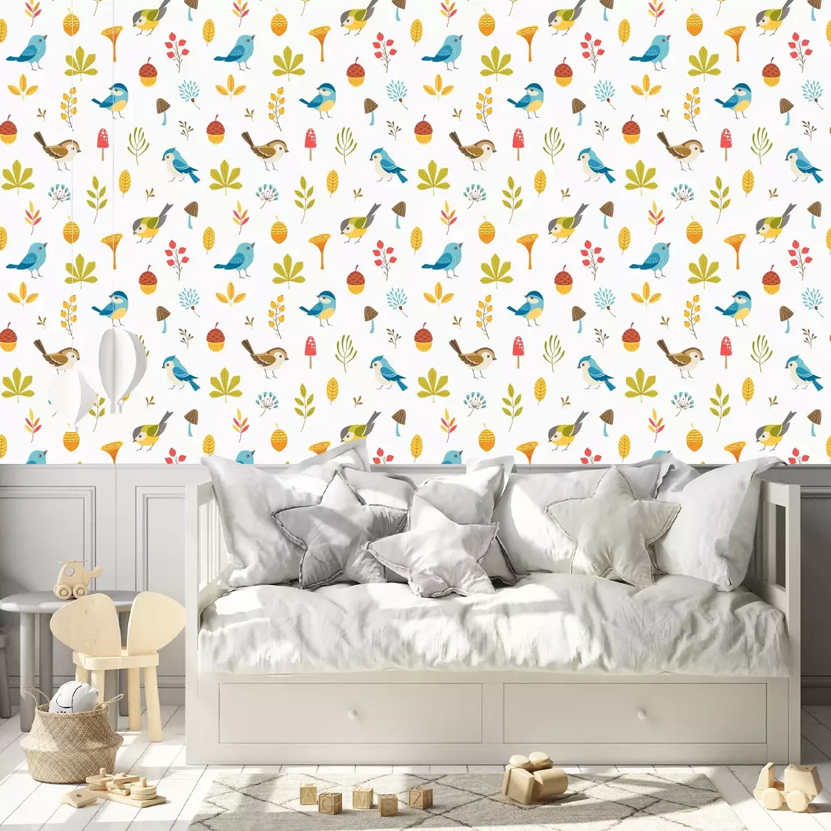 Bunte Vogelblumen und TupfenProblemlose Lieferung durch vertrauenswürdige Spediteure