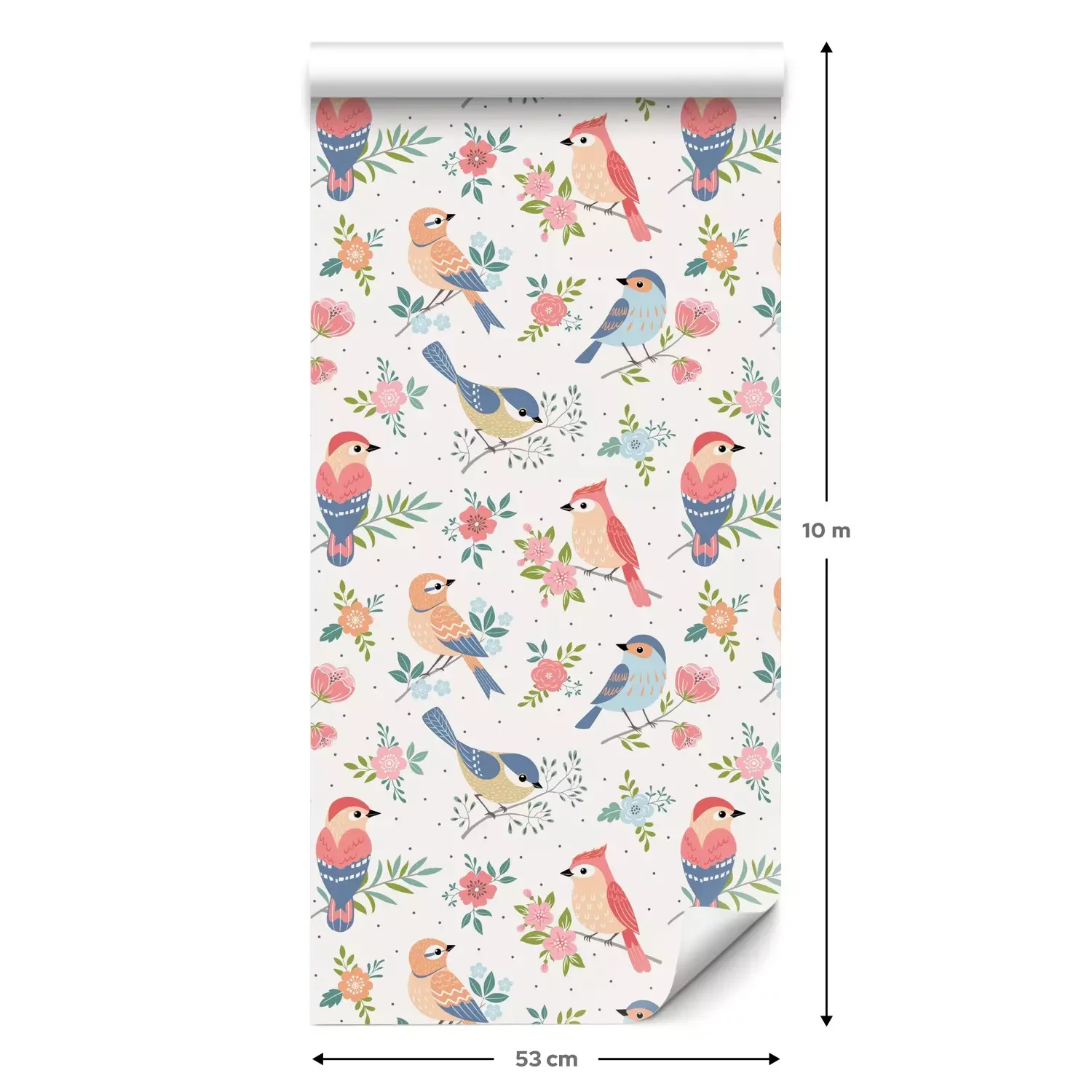 Eine Standard-Tapetenrolle hat die Maße 0,53 m x 10 m und deckt eine Wandfläche von etwa 5 m² ab.
