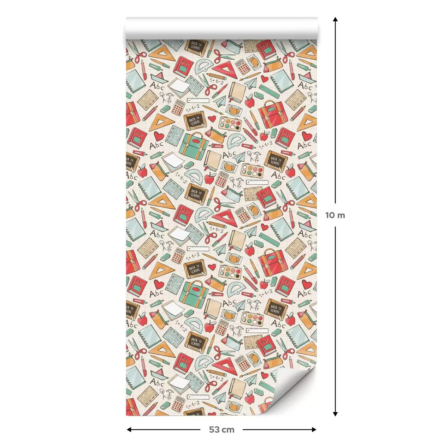 Eine Standard-Tapetenrolle hat die Maße 0,53 m x 10 m und deckt eine Wandfläche von etwa 5 m² ab.